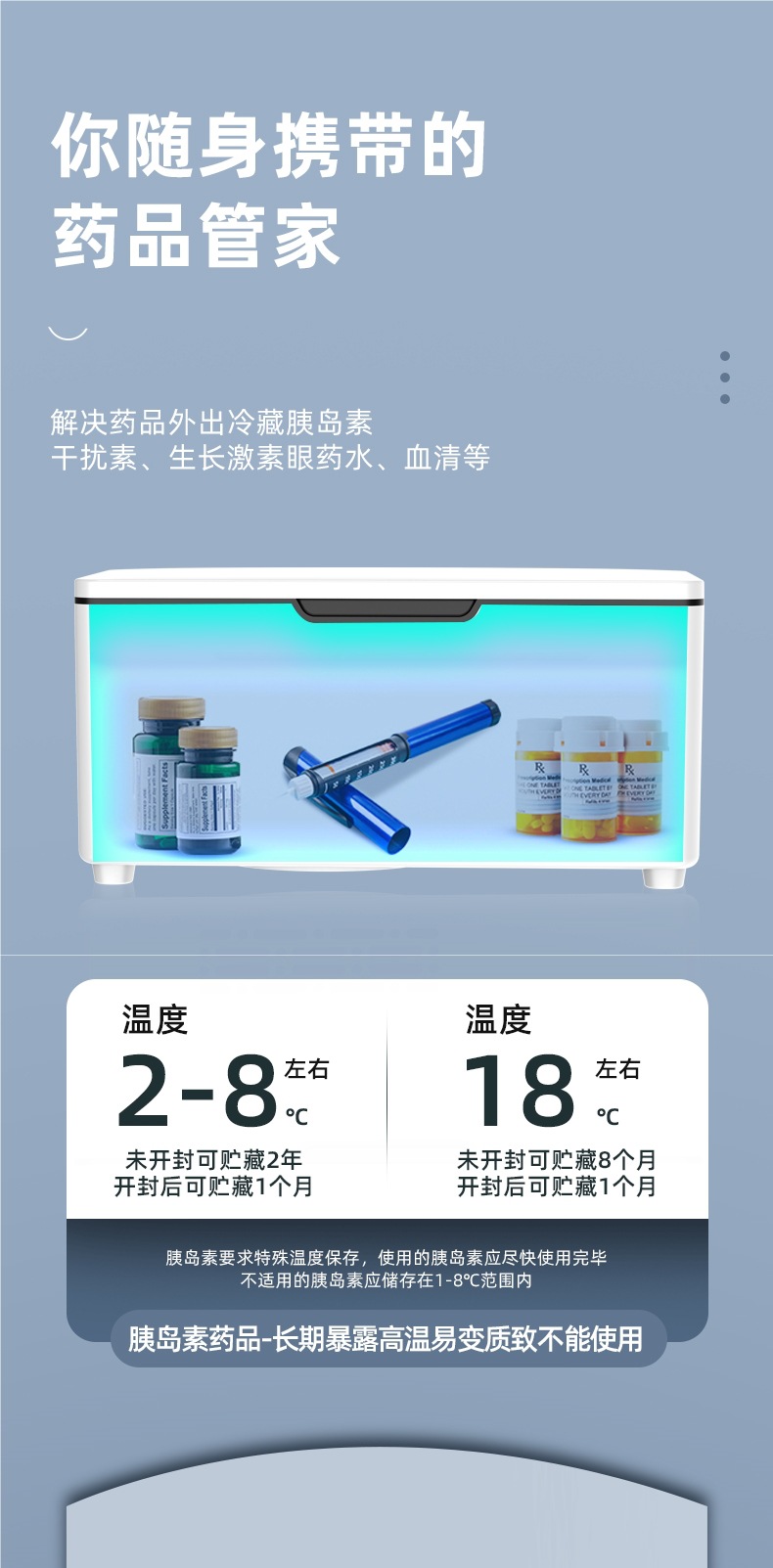 인슐린 냉장 상자 휴대용 여행 충전식 냉장 소형 냉장고 자동차 홈 이중 목적 의약품 냉장고 온도 조절기