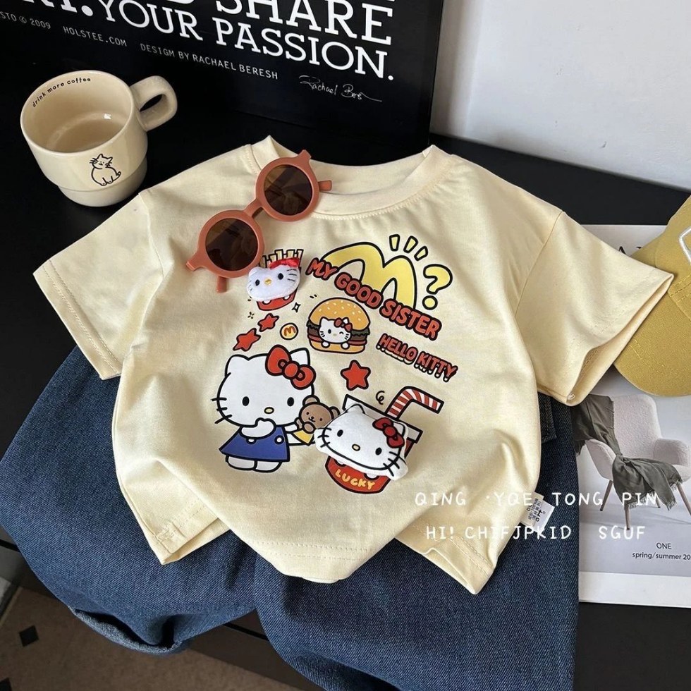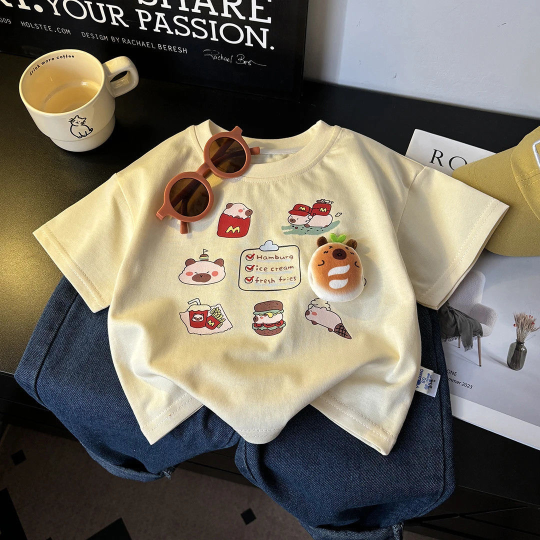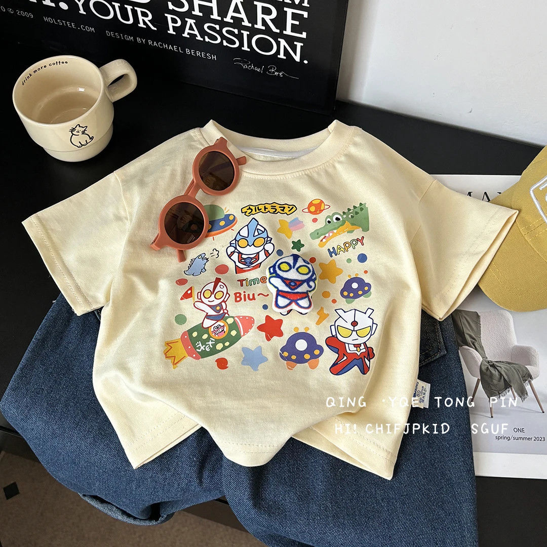 [로켓 우주선] 소년 소녀용 아동용 반팔 면 인형 바닥 셔츠 여름 루즈한 한국식 티셔츠