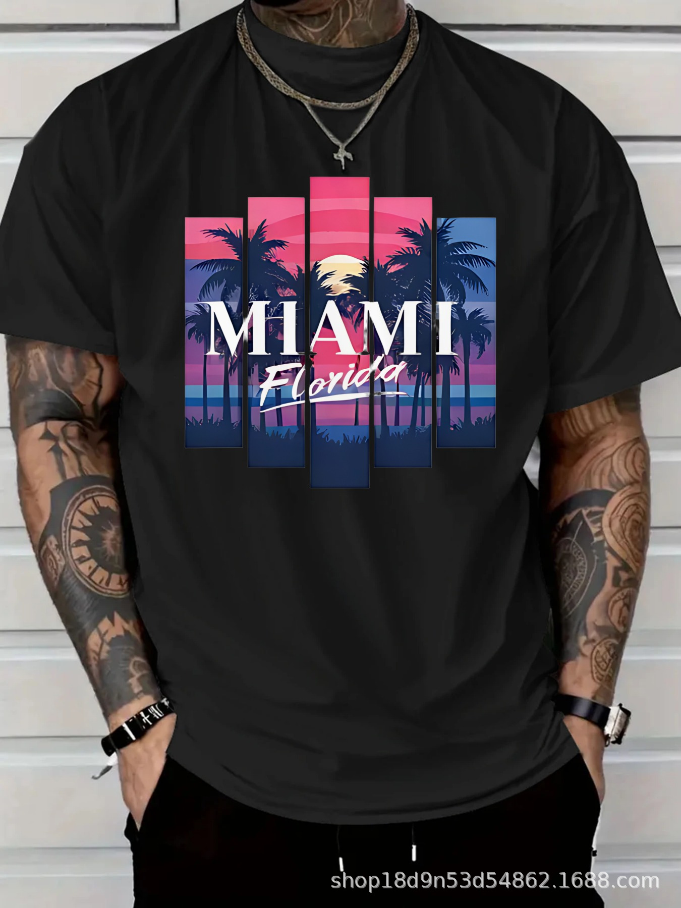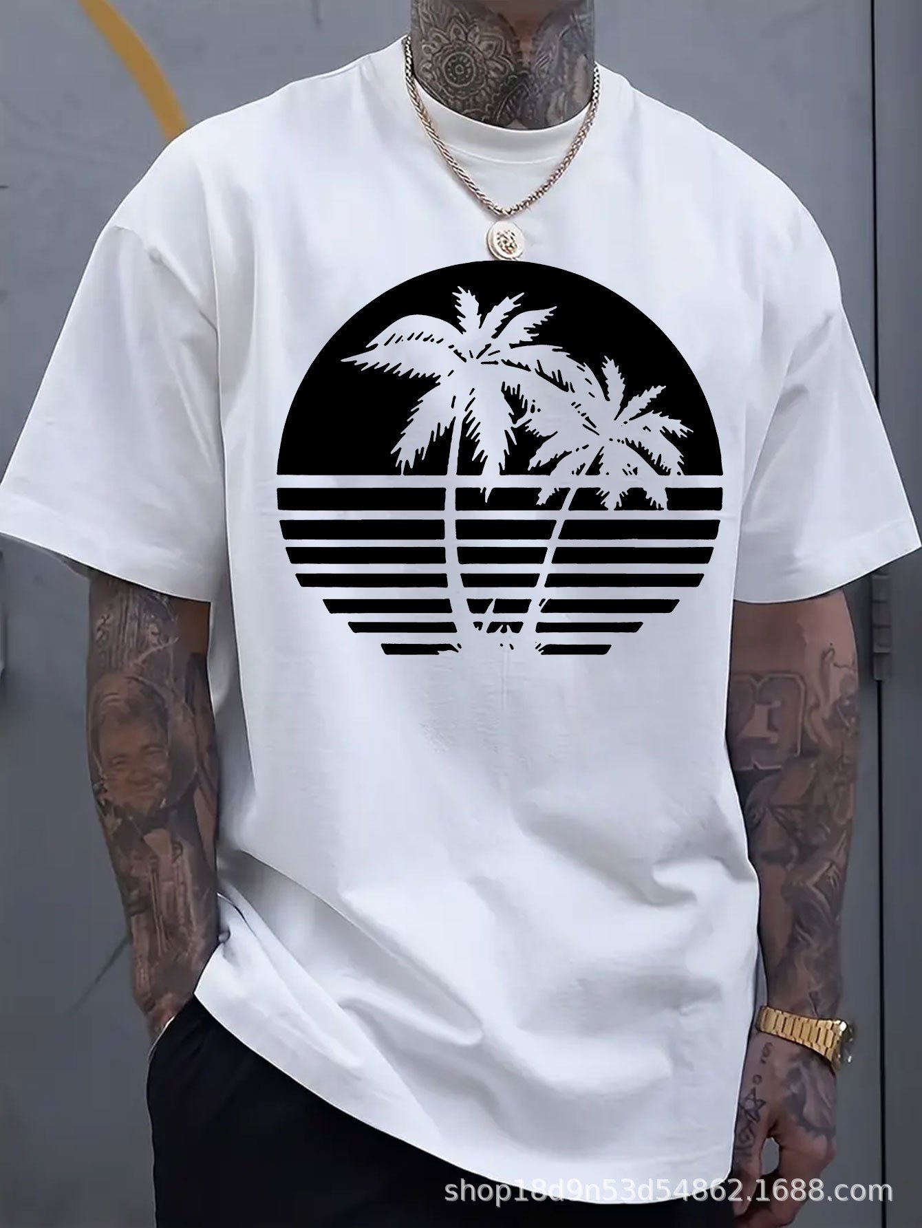 국경 간 스팟 반팔 티셔츠 남성 유럽과 미국의 새로운 프린트 탑 여름 라운드 넥 대형 반팔 티셔츠 대외 무역