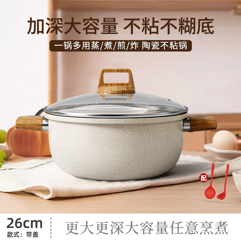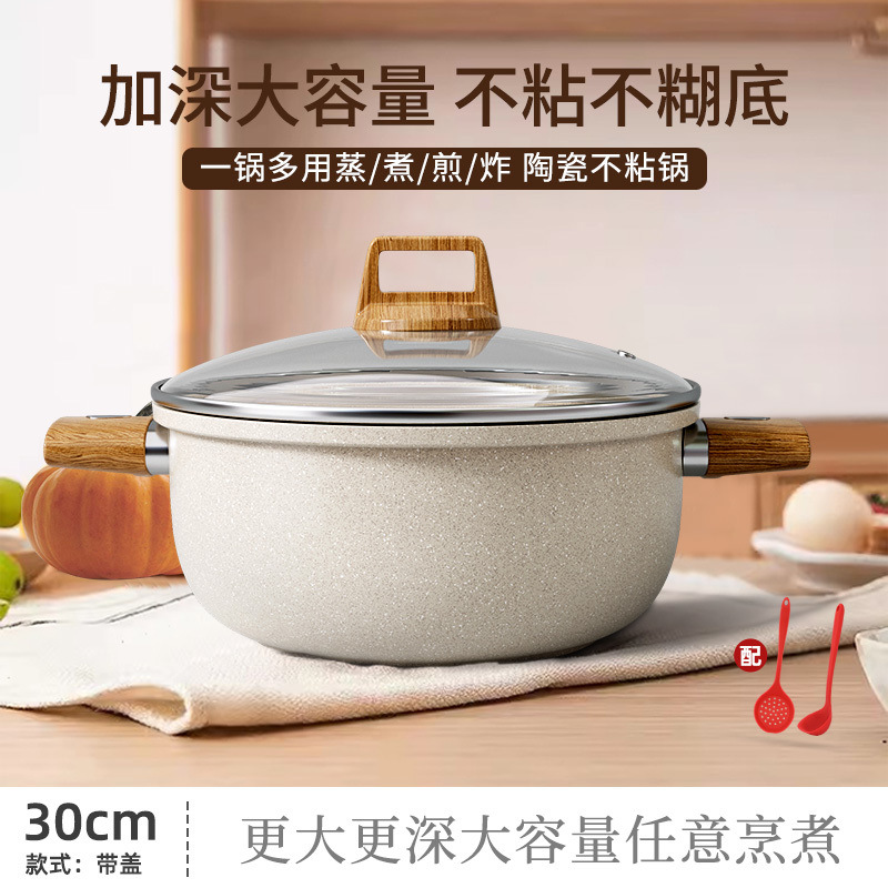 가정용 밀레나이트 수프 냄비, 다기능 붙지 않는 냄비, 인덕션 스토브, 스티머, 수프 가스 범용 스튜 냄비, 이중 귀