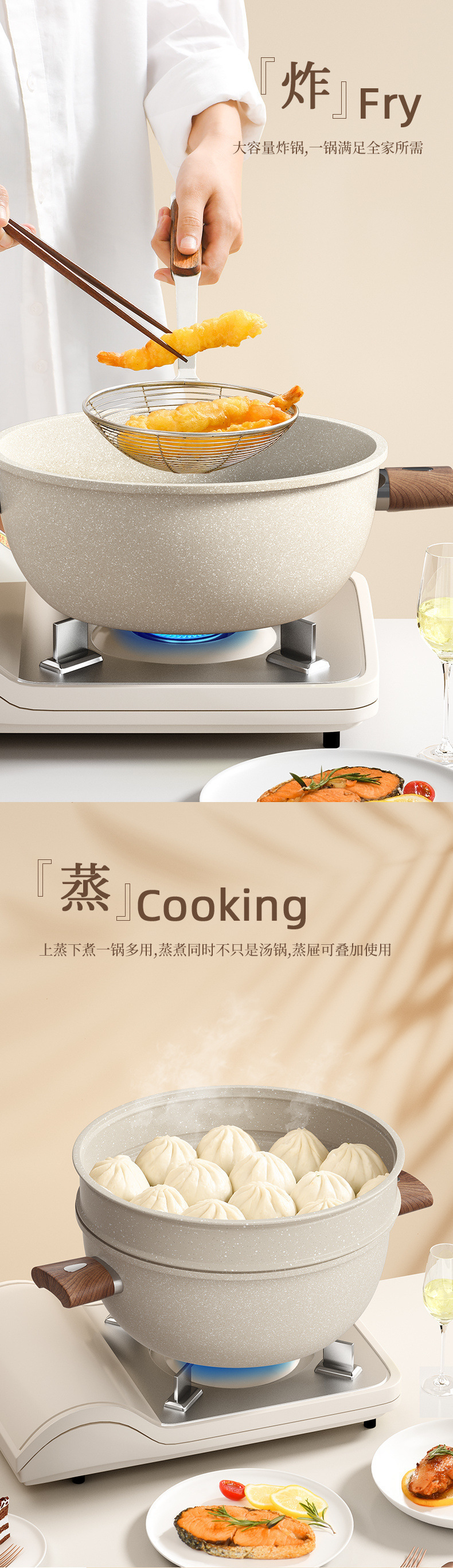가정용 밀레나이트 수프 냄비, 다기능 붙지 않는 냄비, 인덕션 스토브, 스티머, 수프 가스 범용 스튜 냄비, 이중 귀스토어 가기