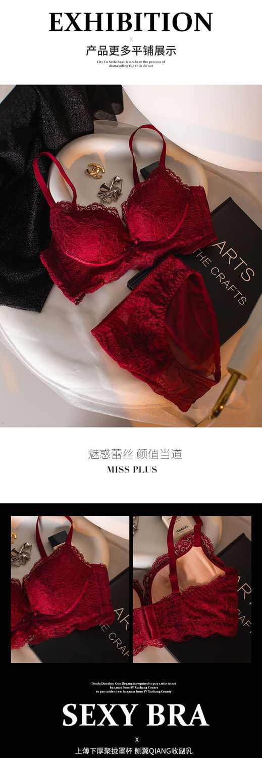 여성의 섹시한 레이스 레드 별자리 속옷 세트 작은 가슴 푸시 업은 큰 가슴을 보여줍니다. 두꺼운 브래지어스토어 가기