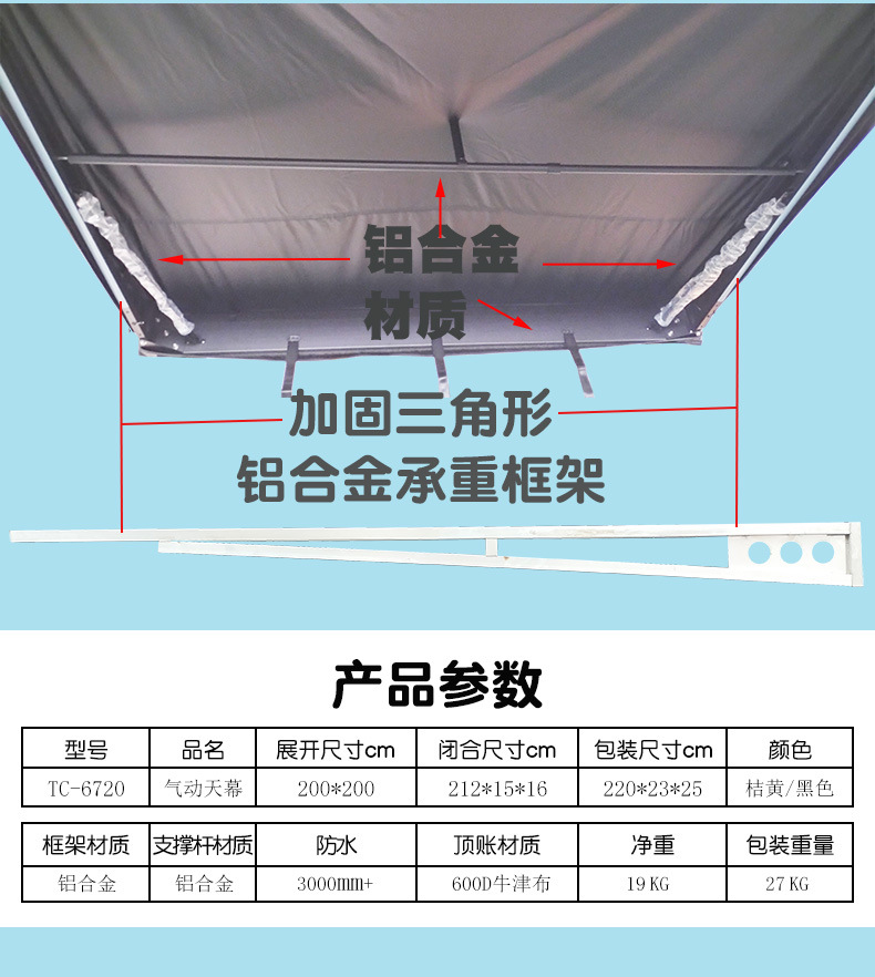 차량용 텐트, 공기압식 차양막, 크로스보더 SUV 차량용 텐트, 야외 캠핑용 알루미늄 합금 옥스포드 천 방수 차양막