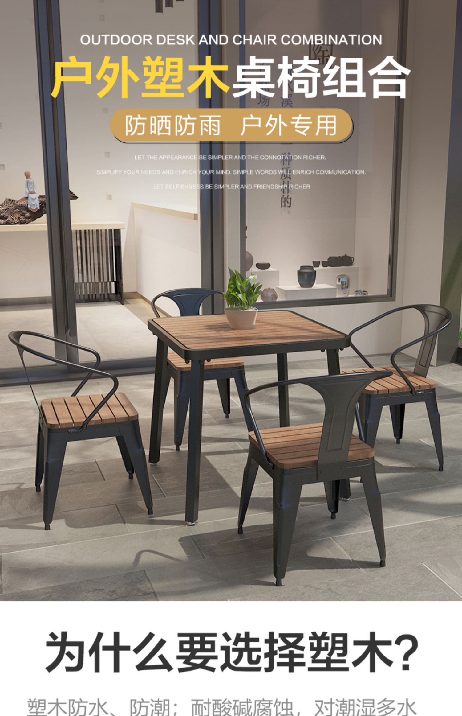 야외 테이블과 의자, 안뜰 플라스틱 목재 야외 북유럽 방수, 부식 방지 및 자외선 차단제, 간단한 빌라 발코니 레저 테이블과 의자