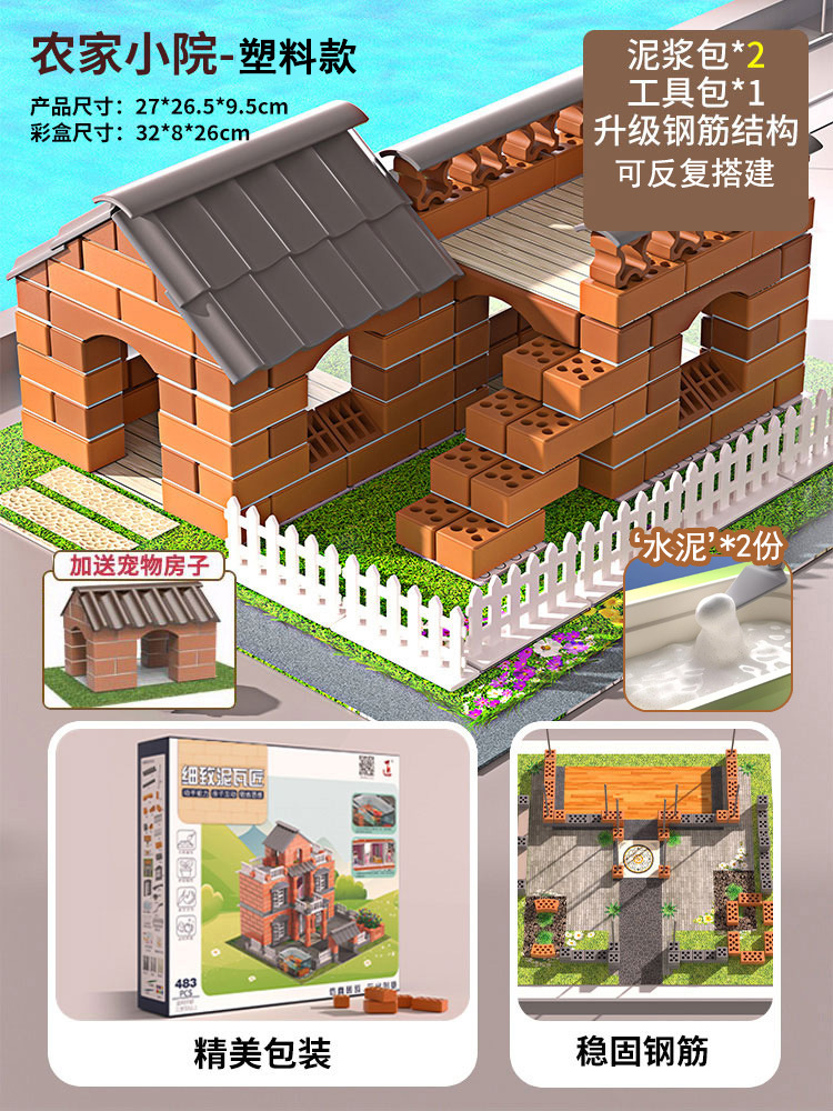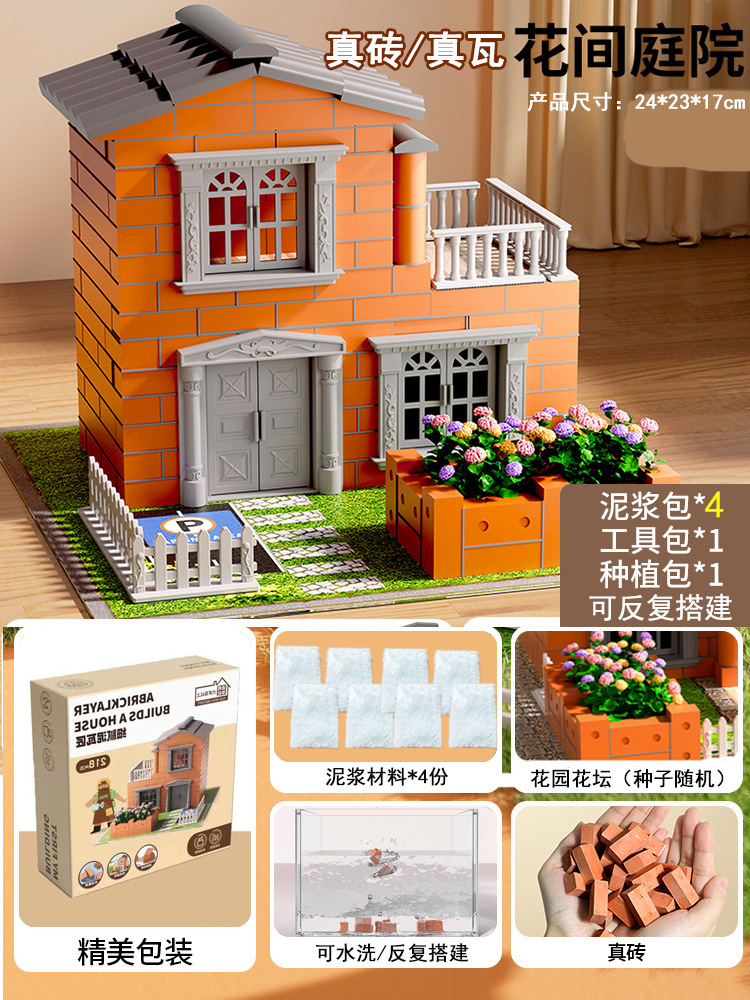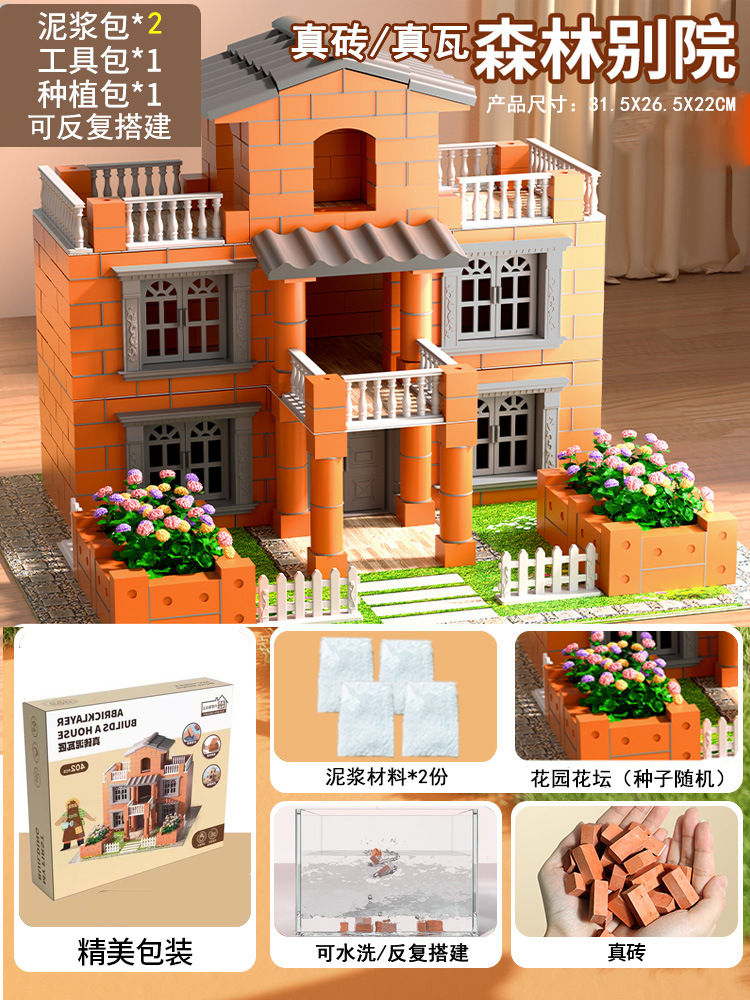 집을 짓고 벽을 쌓는 장난감 실제 벽돌 61 어린이 날 건설 수제 diy 캐빈 미니 시멘트
