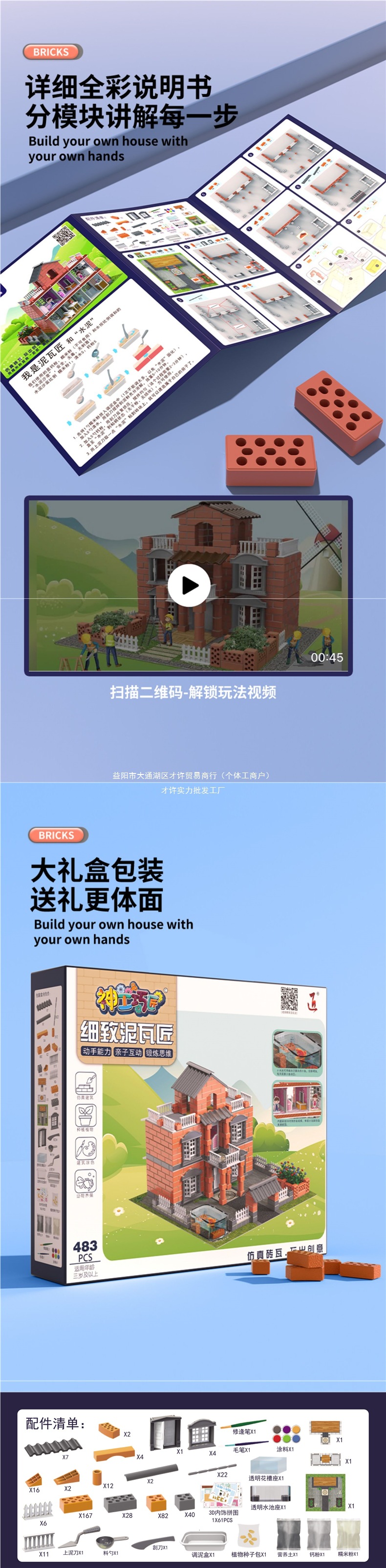 집을 짓고 벽을 쌓는 장난감 실제 벽돌 61 어린이 날 건설 수제 diy 캐빈 미니 시멘트스토어 가기