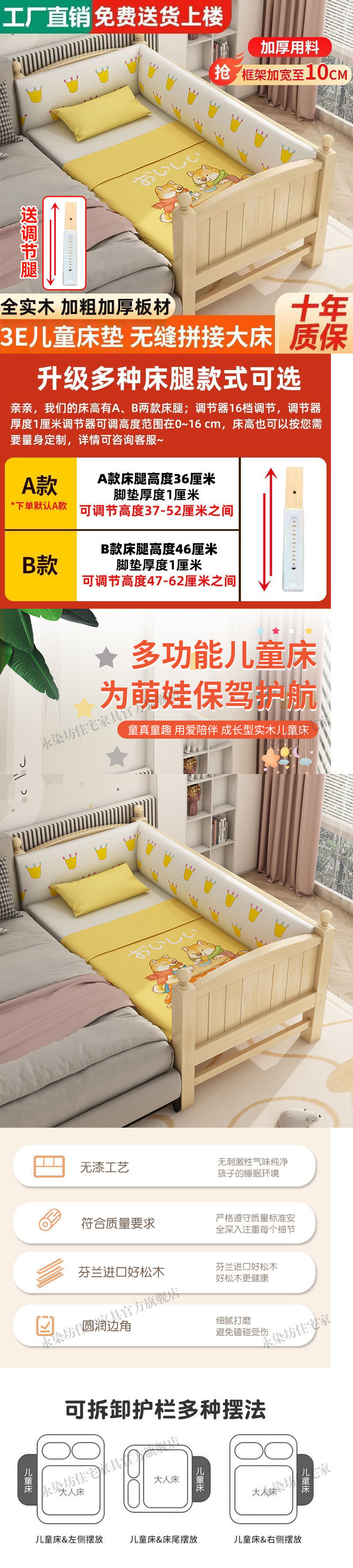 단단한 나무 아기 접합 침대, 넓은 안전 가드 포함, 소년 소녀 싱글 침대 옆 침대, 어린이 접합 대형 침대스토어 가기