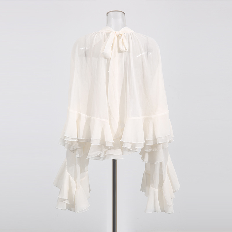 여성을위한 국경 간 새 셔츠 2025 여성을위한 새로운 패션 캐주얼 긴팔 계단식 프릴 짧은 쉬폰 셔츠
