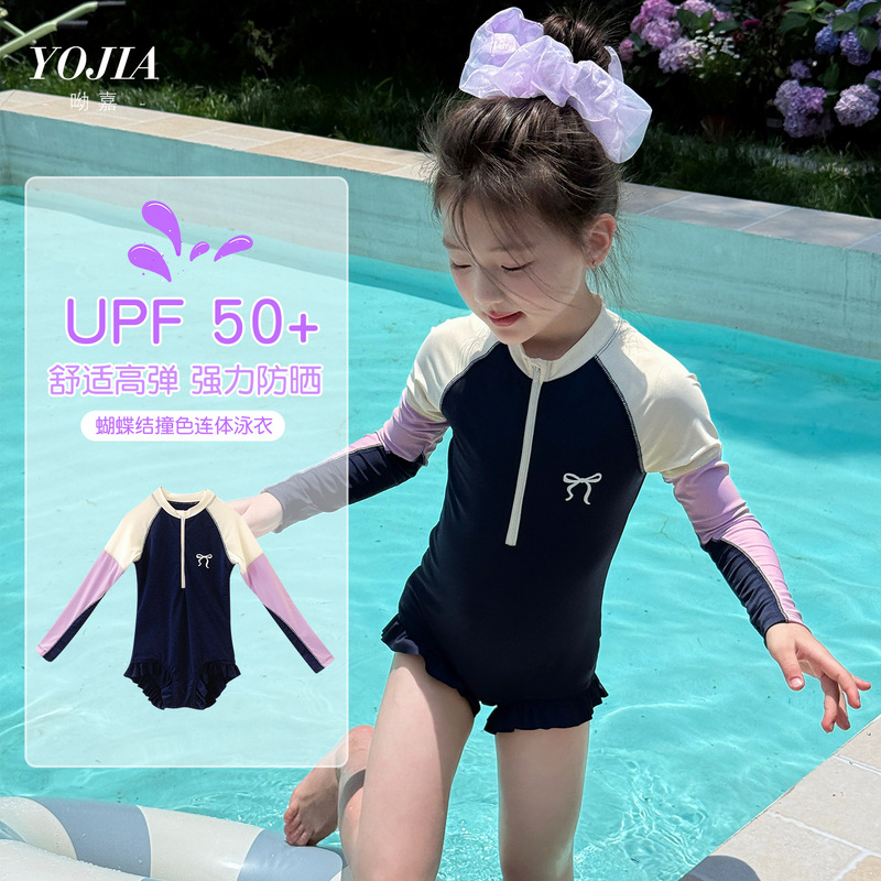 YOJIA 여자 수영복 여름 2025 새로운 태양 보호 UPF50 + 어린 소녀 수영복 어린이 긴팔 수영복