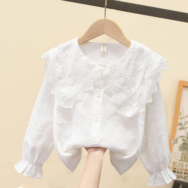 레이스 여아 셔츠 긴팔 한국식 셔츠 새로운 스타일 아기 소녀 인형 셔츠 가을 옷 아동상의 아기 쉬폰