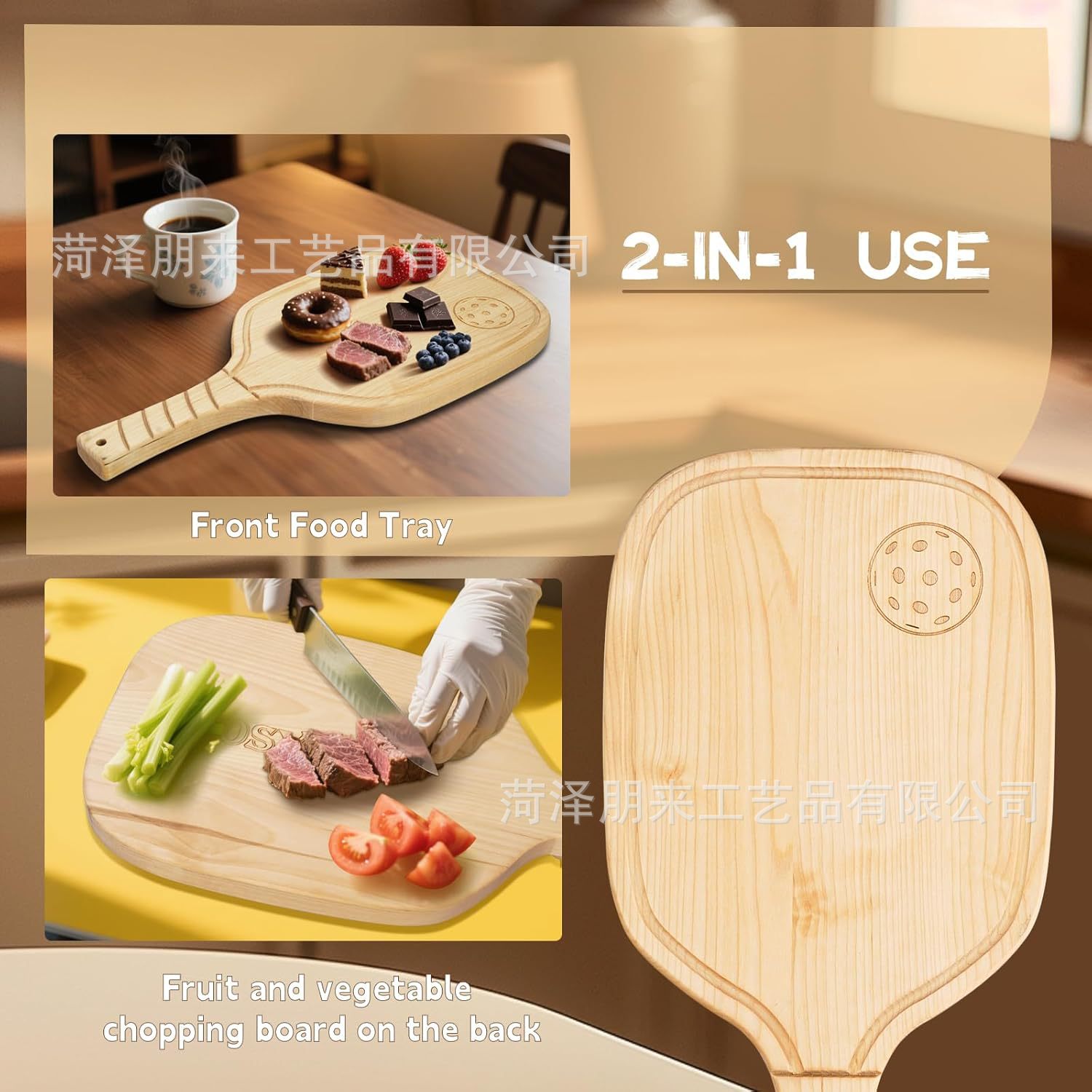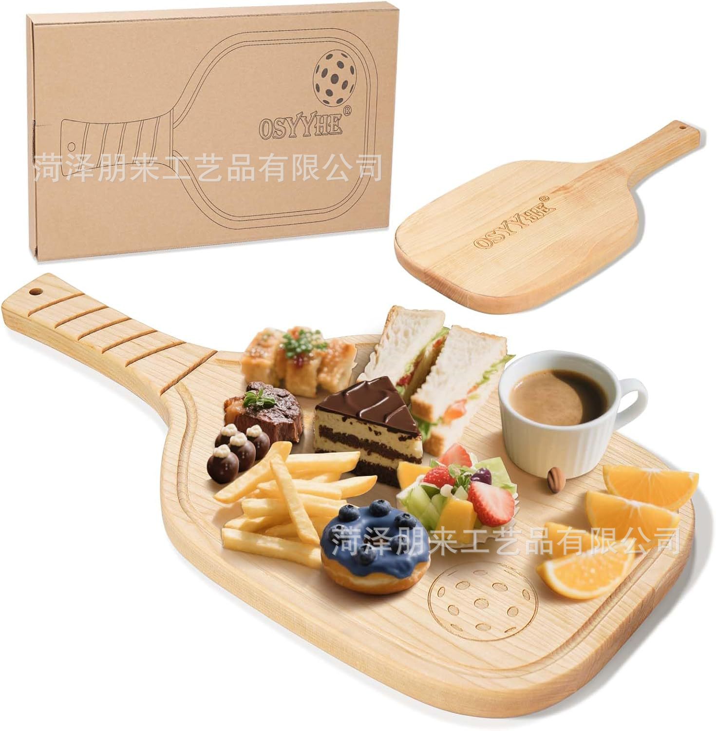 손잡이가있는 크리 에이 티브 피클 볼 라켓 단단한 나무 도마 가정용 나무 치즈 스테이크 보드 피클 볼 라켓 나무 트레이