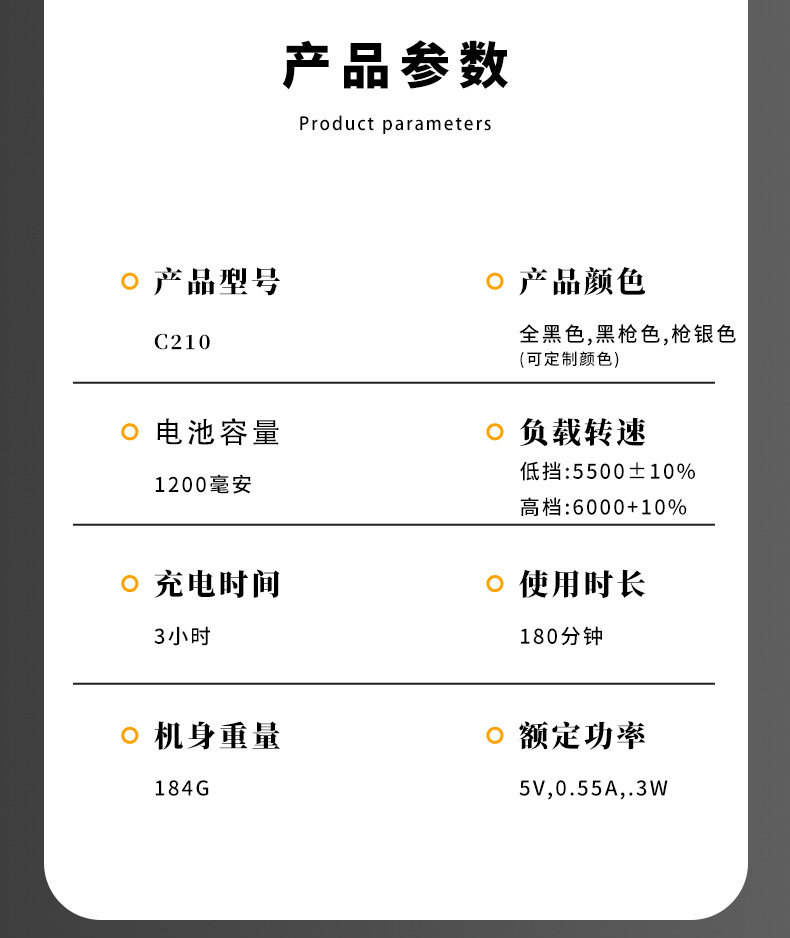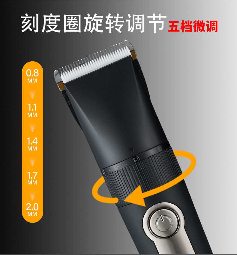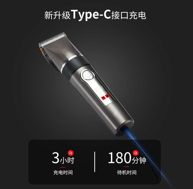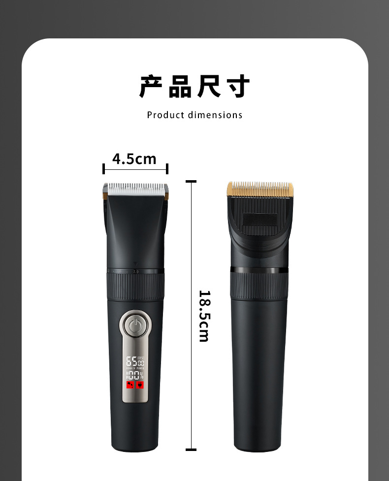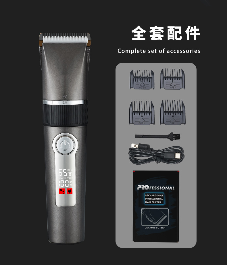 1.主机(配陶瓷刀头) 限位梳黑色4个:3.6.9.12MM 数据线黑色(Type-C 0.8M),黑色(长的毛刷),中性包装 说明书