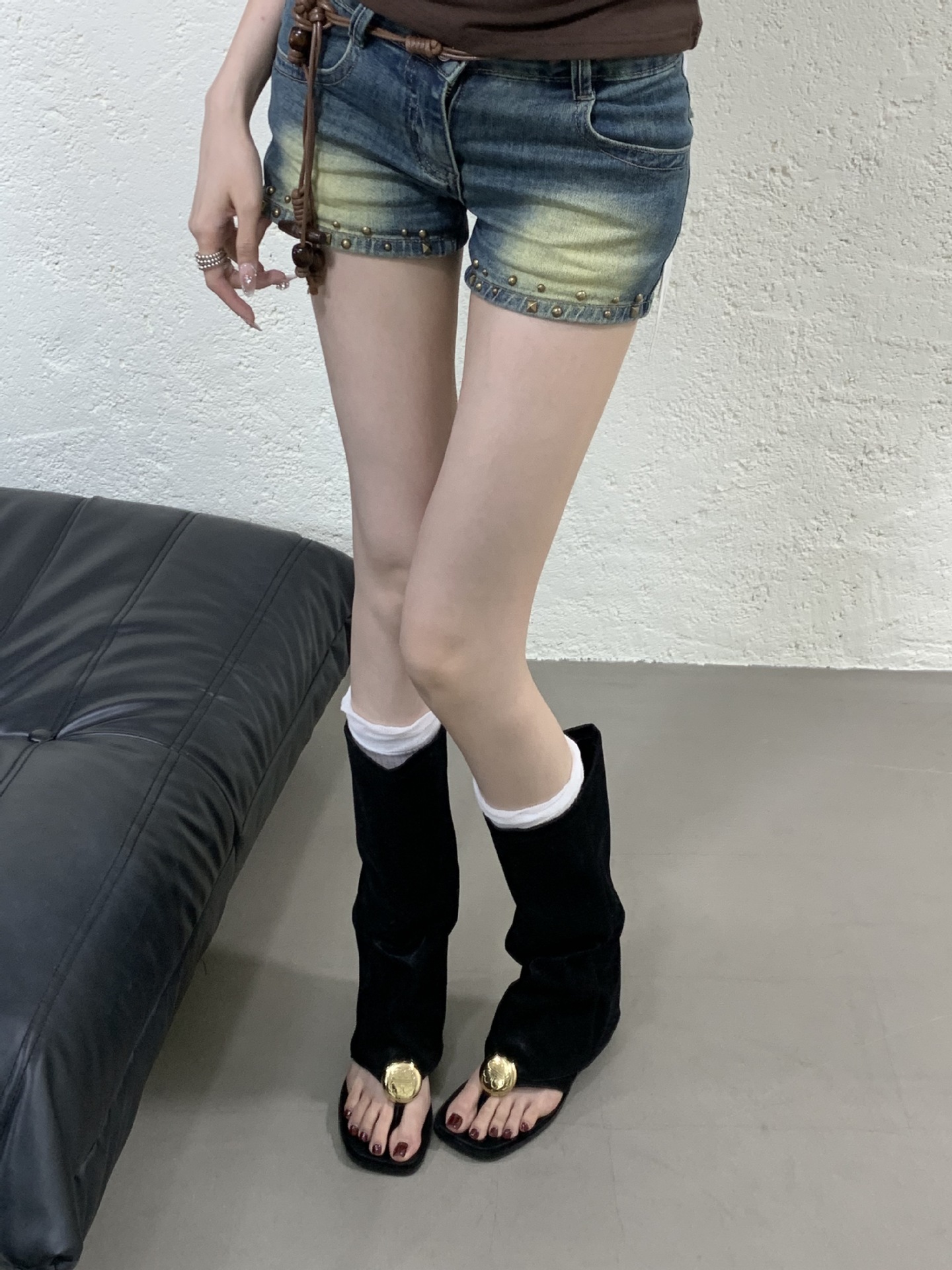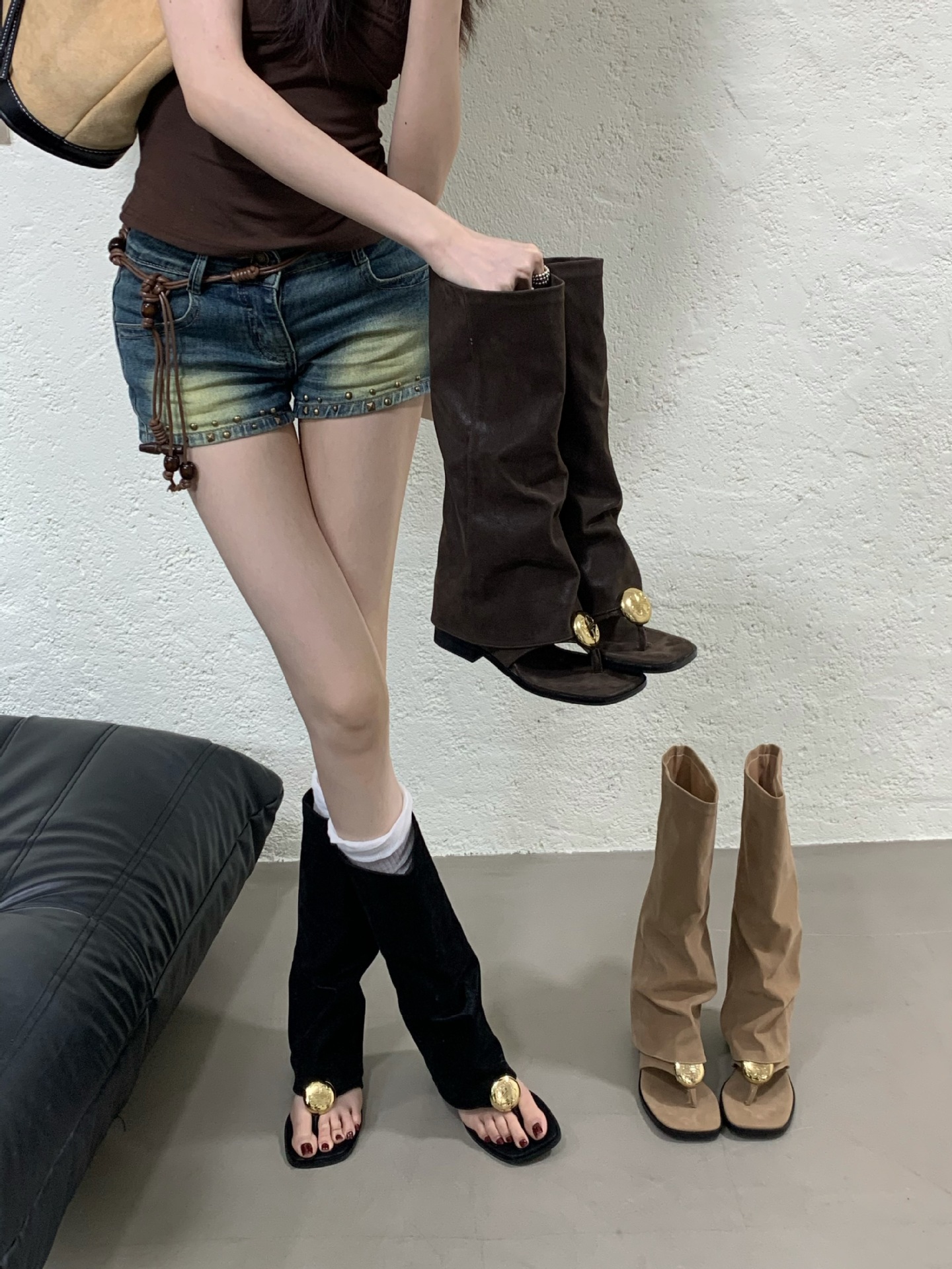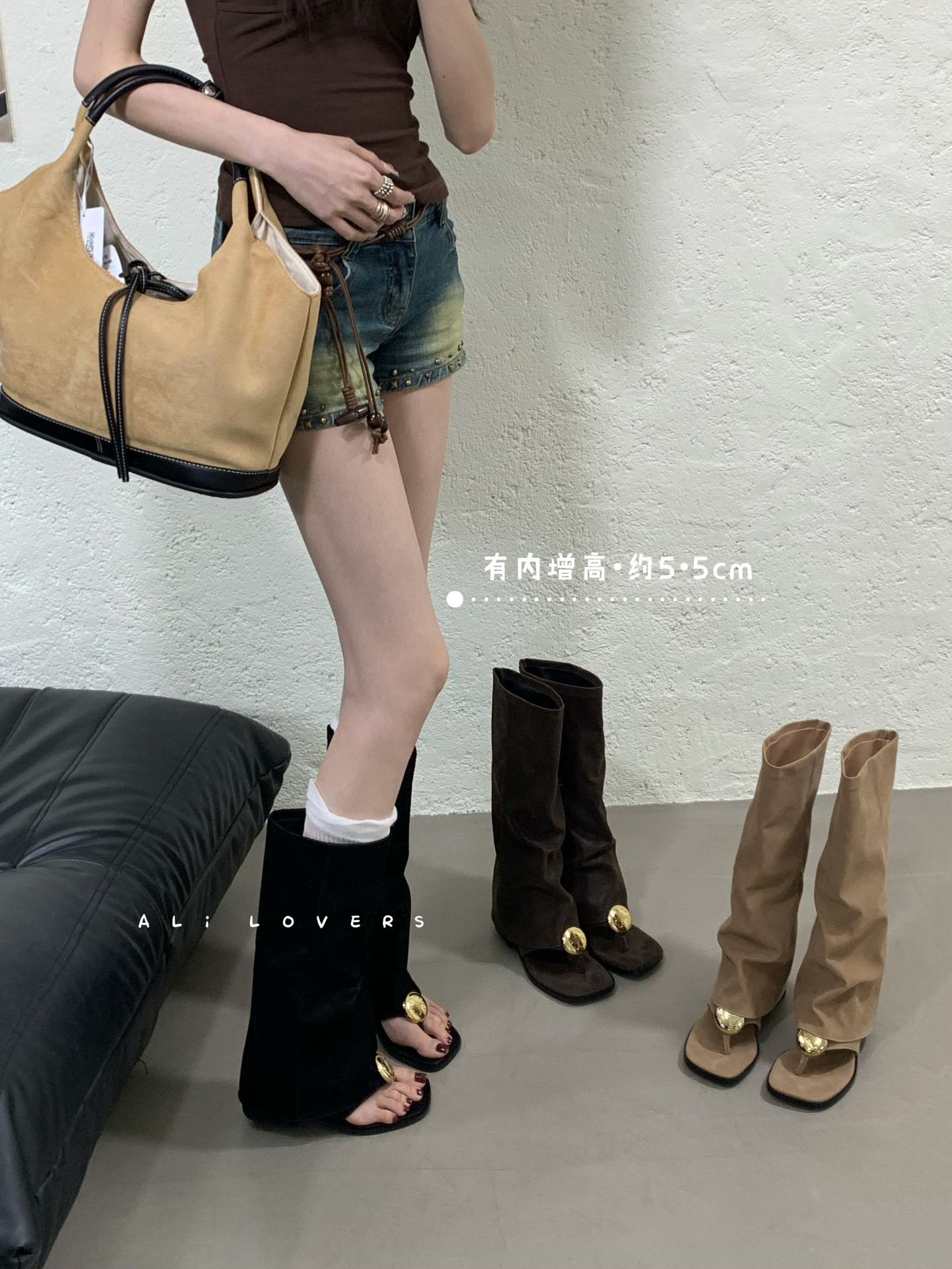 여성을위한 내부 높이 증가 헤링본 클립 샌들 2025 새로운 여름 유행 뜨거운 소녀 바지 짧은 로마 샌들스토어 가기