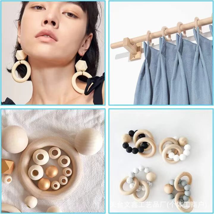 제조업체 재고 원목색 목재 링 선물 상자 링 커튼 고리 목재 링 의류 애완동물 수공예 장식 액세서리스토어 가기