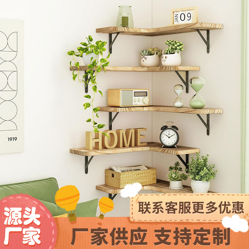컨트리 스타일의 나무 벽 선반 벽걸이 형 플로팅 파티션 단단한 나무 코너 스토리지 랙 잡다한 정리 랙스토어 가기