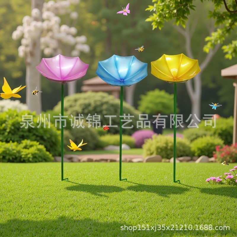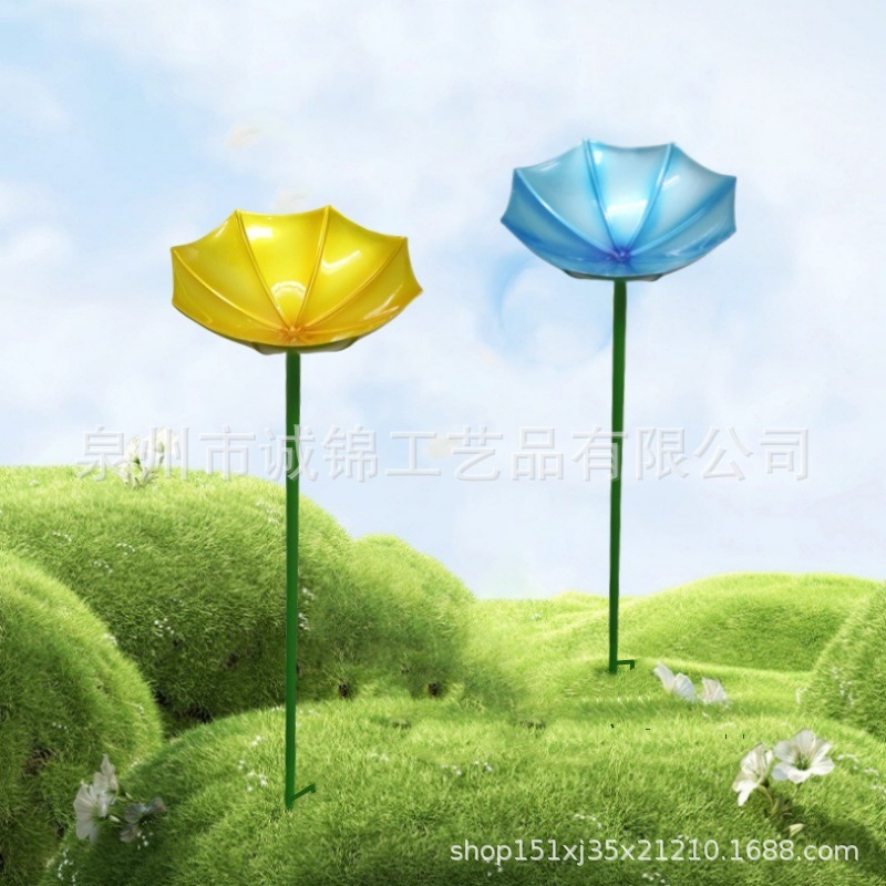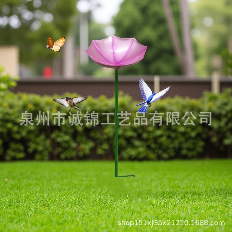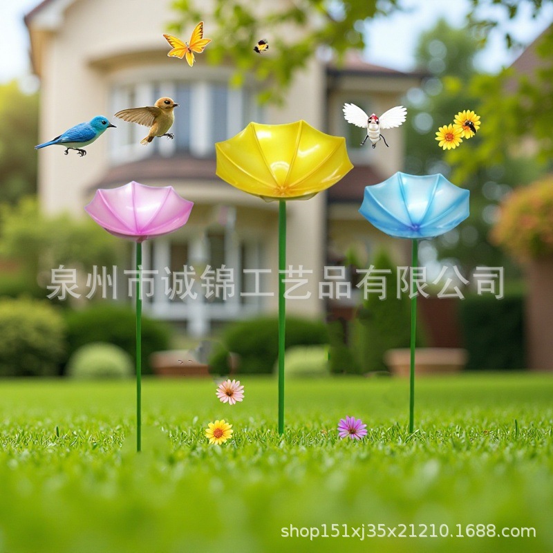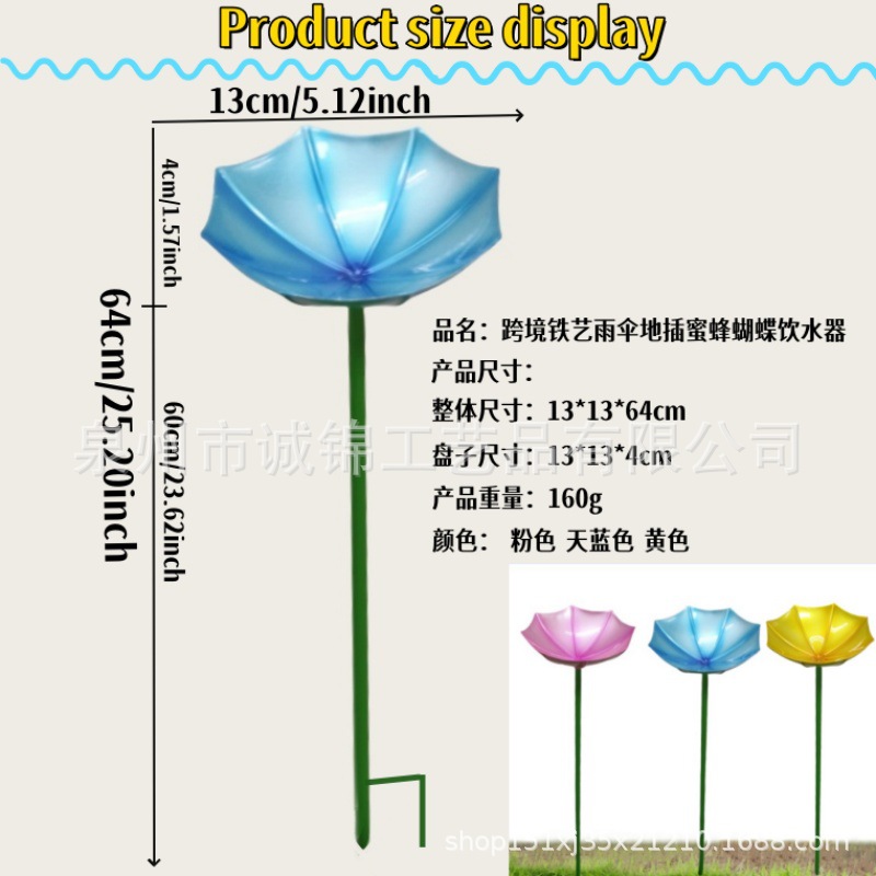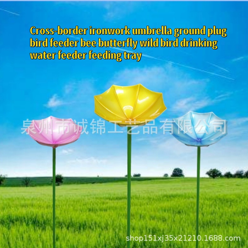 跨境新品蜜蜂蝴蝶饮水器野鸟食盆雨伞地插喂鸟器