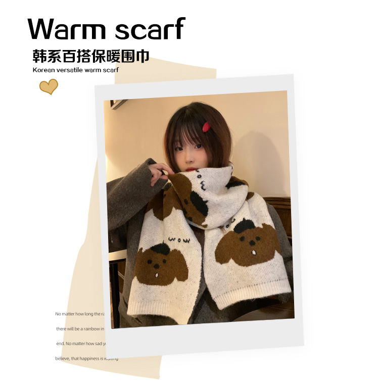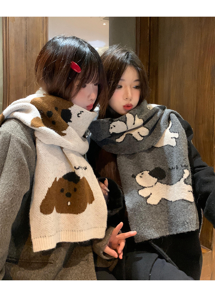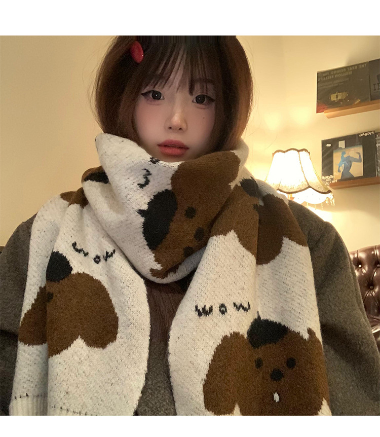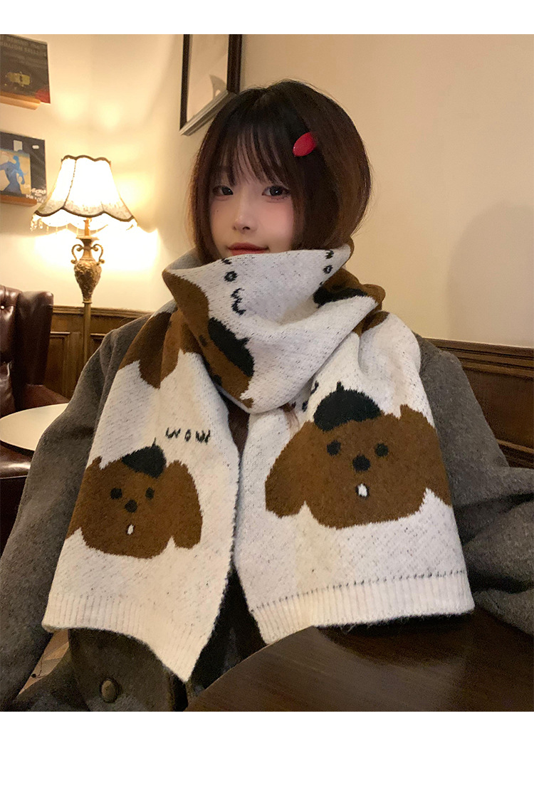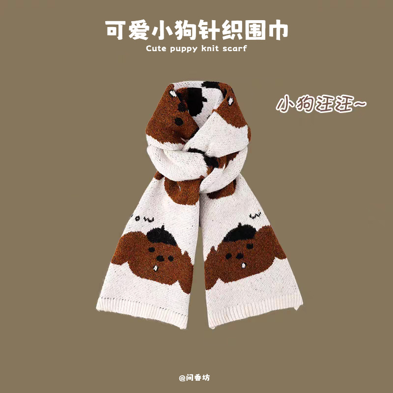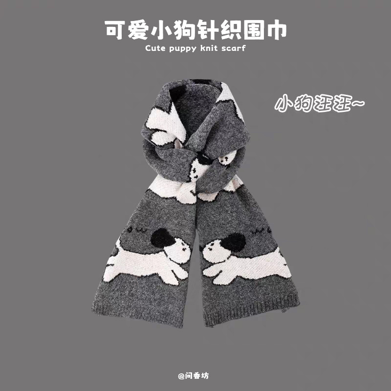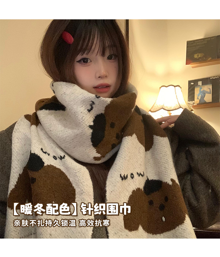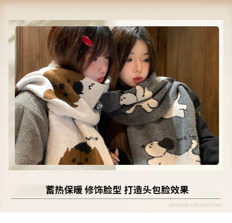 여성을위한 귀여운 만화 강아지 니트 스카프 2024 가을, 겨울 분위기 두꺼운 따뜻한 학생 커플 스카프