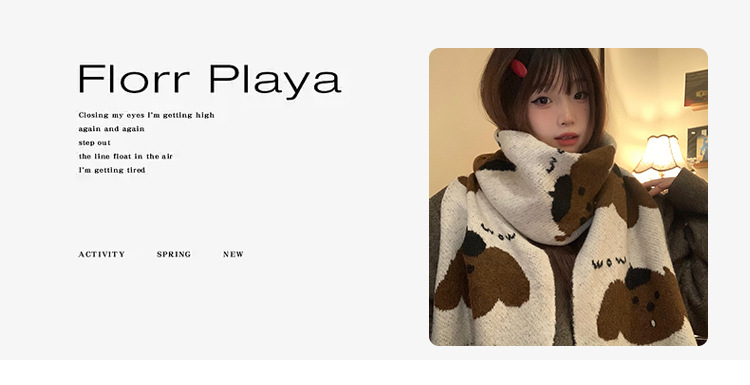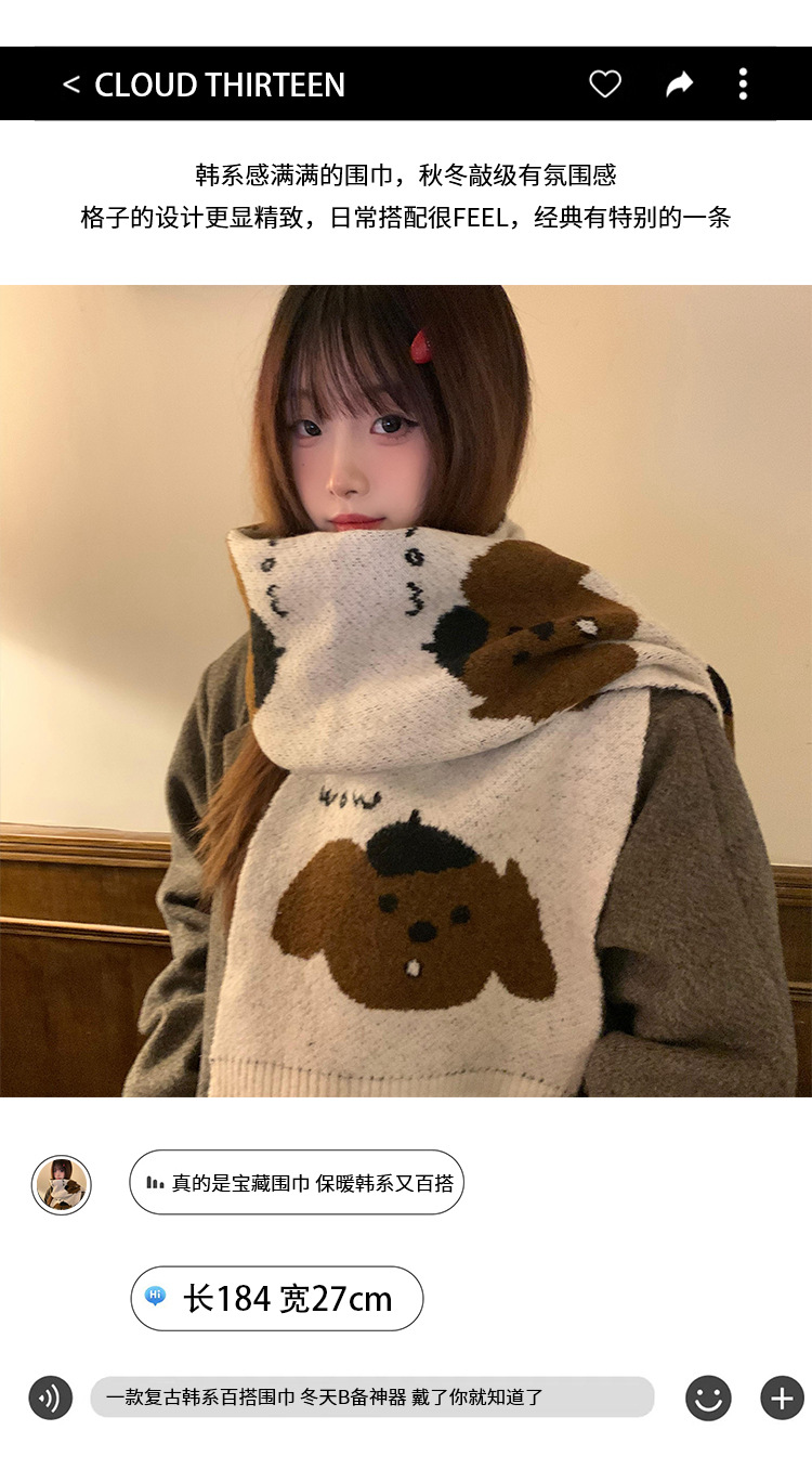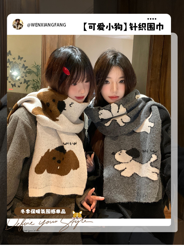 여성을위한 귀여운 만화 강아지 니트 스카프 2024 가을, 겨울 분위기 두꺼운 따뜻한 학생 커플 스카프스토어 가기