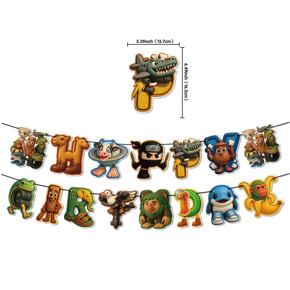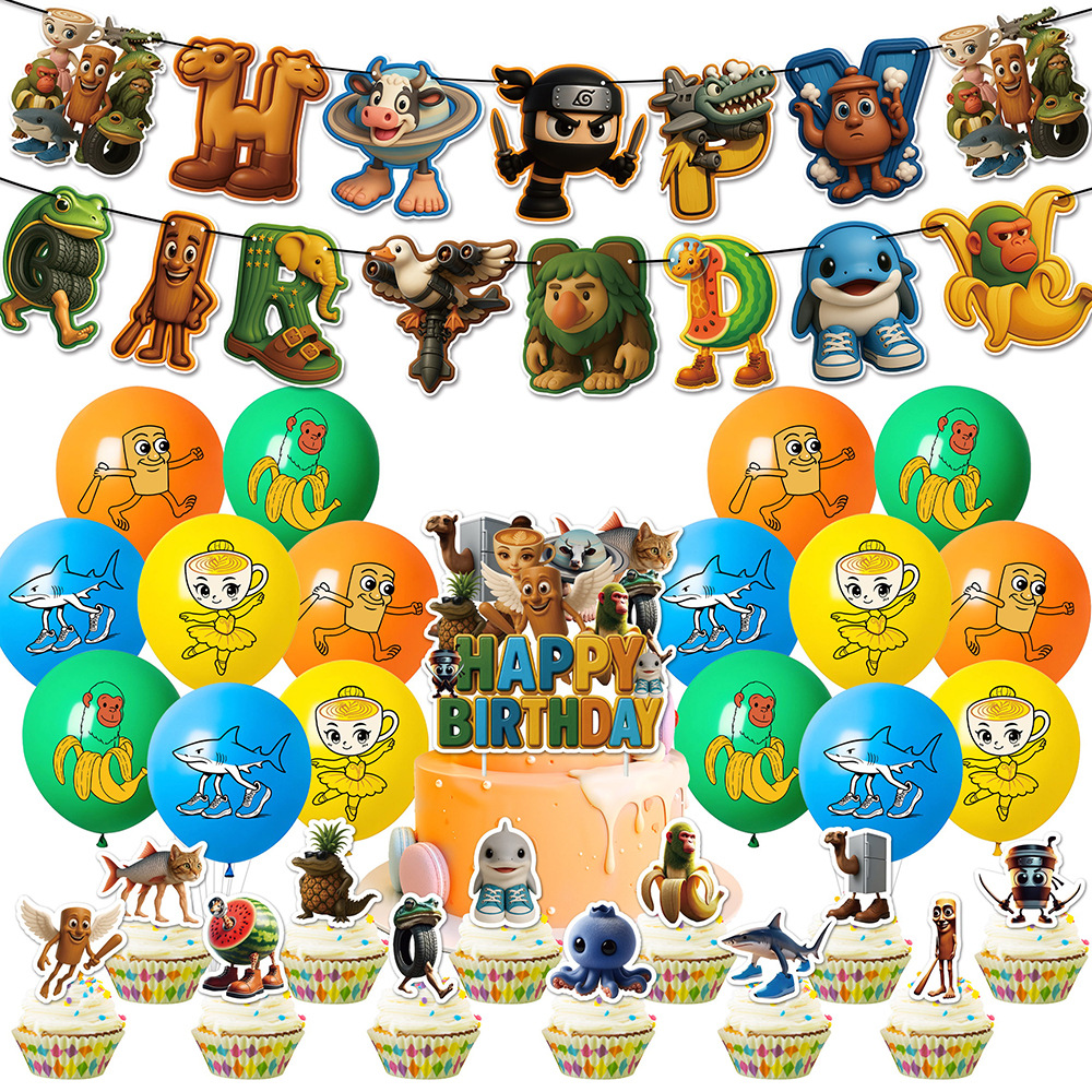 Shan Hai Jing 게임 Tung TungSahur 뇌 쇄골 상어 나무 막대 생일 파티 장식 깃발 풍선
