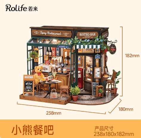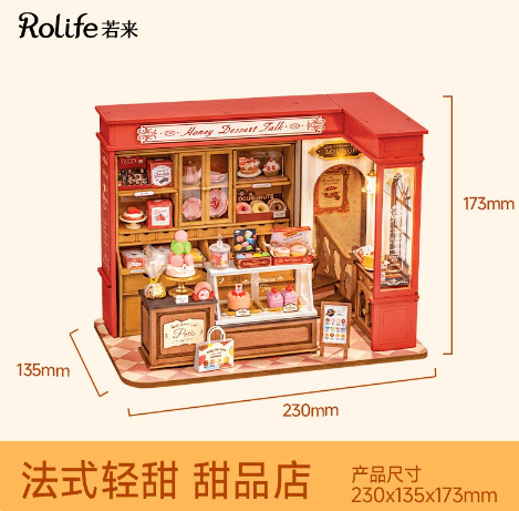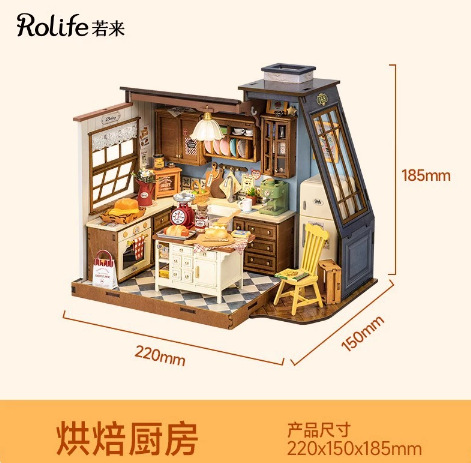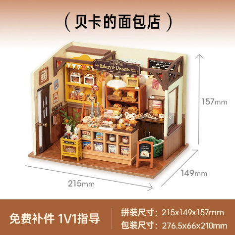 Rolife Ruolai Becka의 베이커리 DIY 수제 오두막 작은 집 모델 미니 장면 빌딩 블록 여성