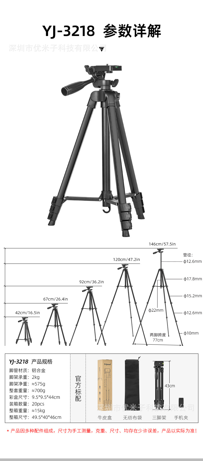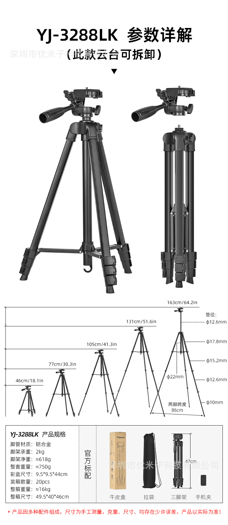 YJ-3288 카메라 삼각대 휴대용 삼각대 망원경 프로젝터 스탠드 휴대 전화 셀카 라이브 방송 스탠드스토어 가기