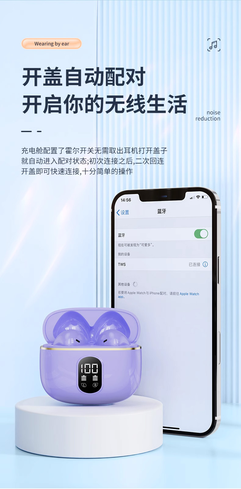 Dopni T02 바이노럴 TWS 양방향 스테레오 충전 케이스 블루투스 헤드셋 마카롱 진정한 무선 비인이어