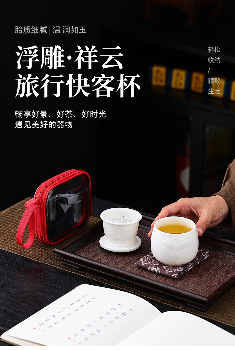 휴대용 여행용 차 세트, 소형 세트, 사무실용, 1인용 특수 찻잔, 야외용 가방, 퀵컵, 주전자 1개, 컵 1개