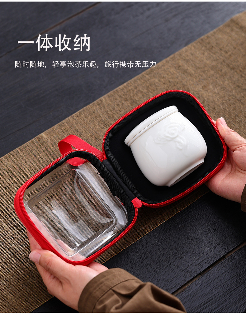 휴대용 여행용 차 세트, 소형 세트, 사무실용, 1인용 특수 찻잔, 야외용 가방, 퀵컵, 주전자 1개, 컵 1개스토어 가기