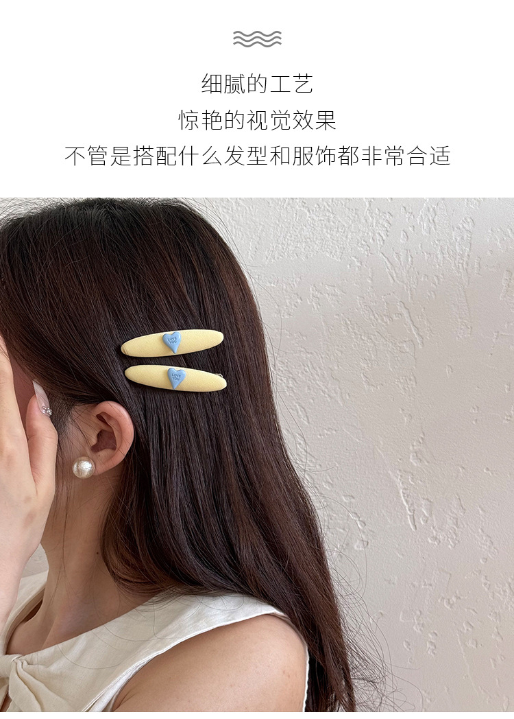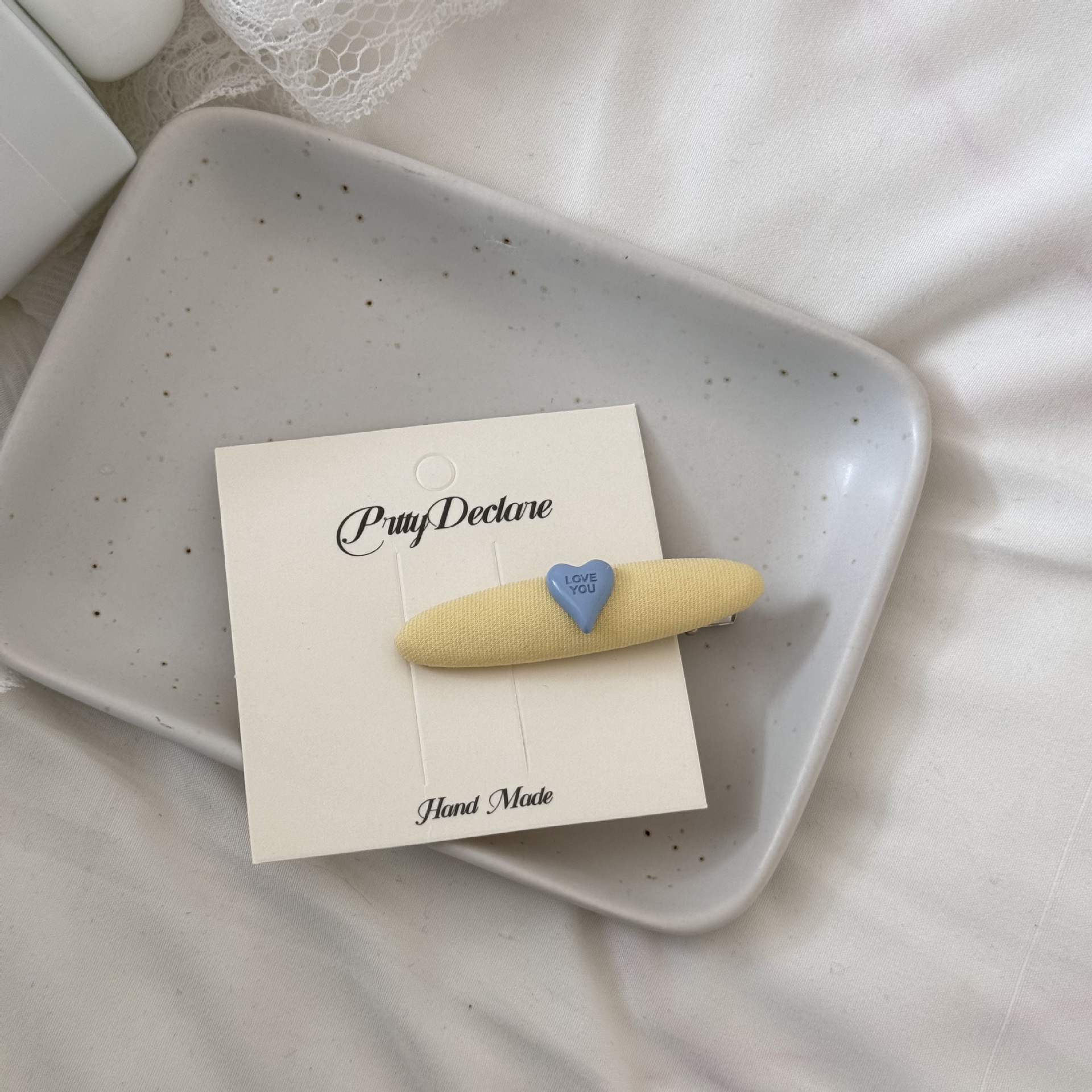 밝은 노란색 ~ 심플하고 달콤하고 귀여운 노란색 사랑 머리핀, 고급스럽고 다재다능한 앞머리 머리핀, 여성용 헤어 액세서리