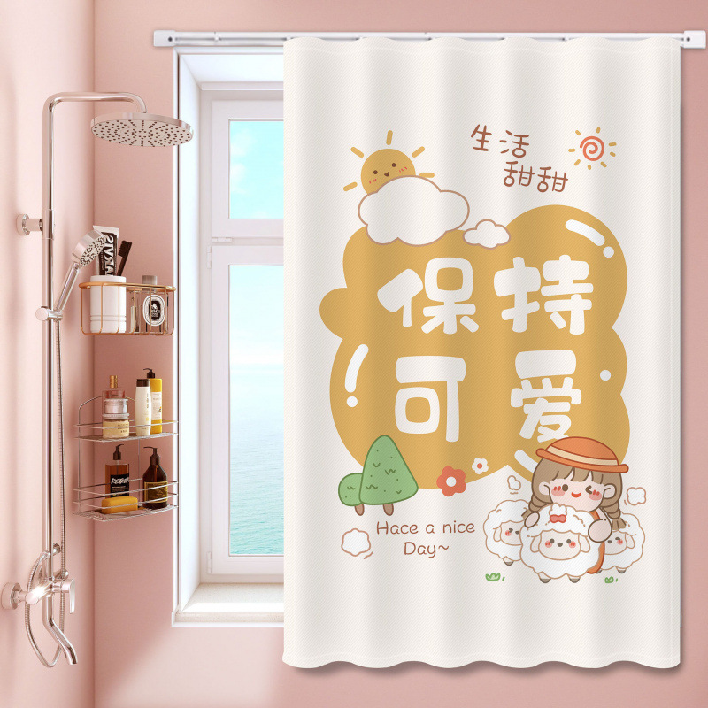 욕실용 빛차단 커튼, 방수 욕실 커튼, 창문에 구멍을 뚫을 필요 없는 커튼