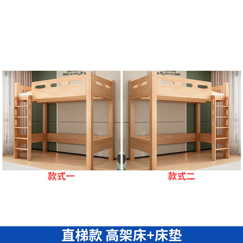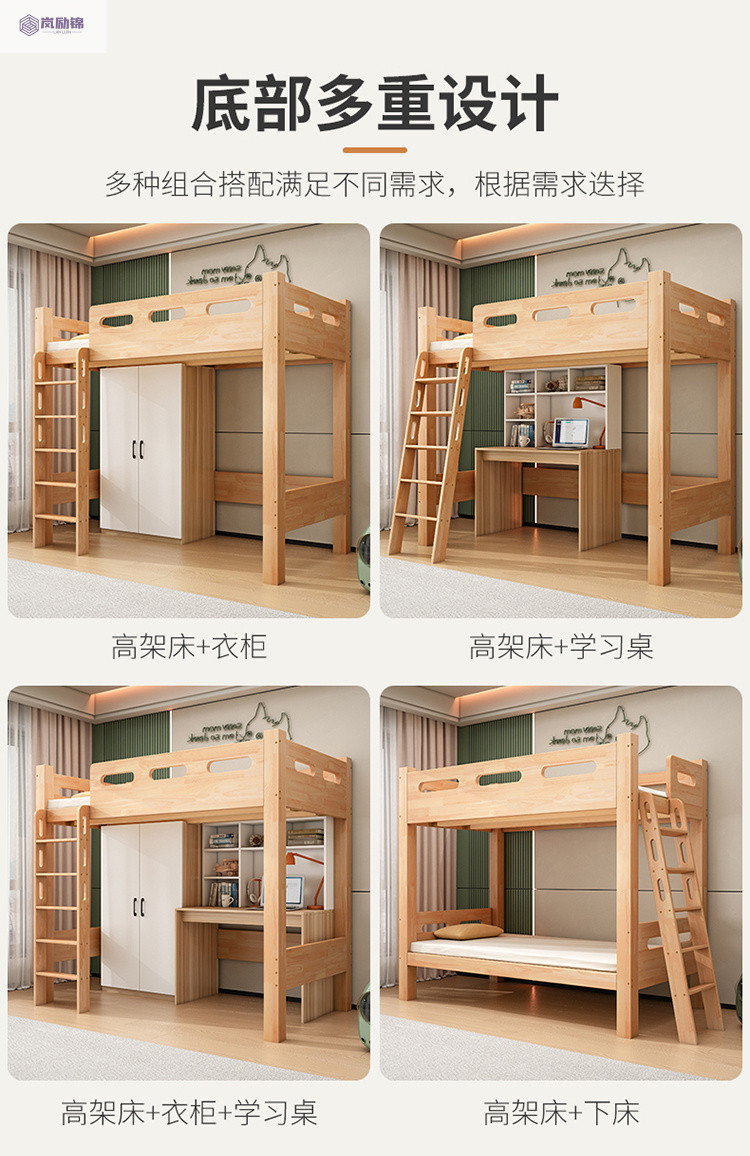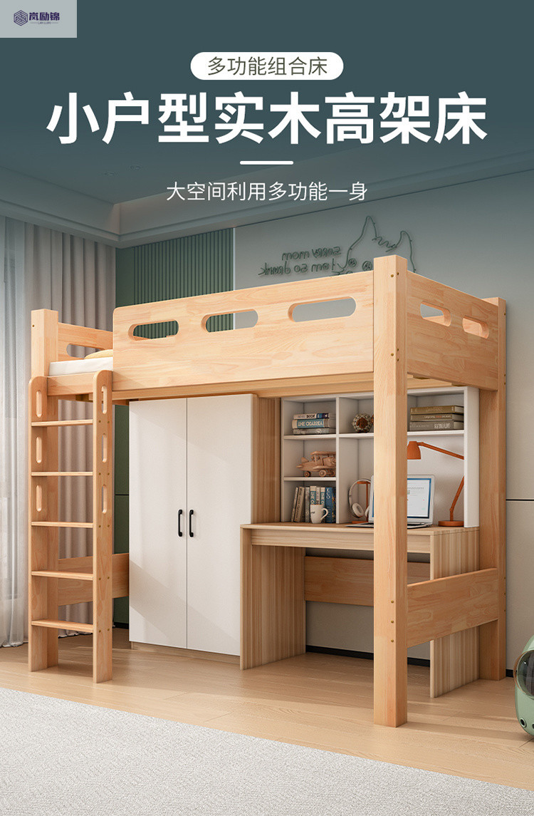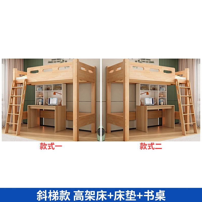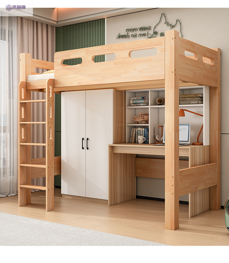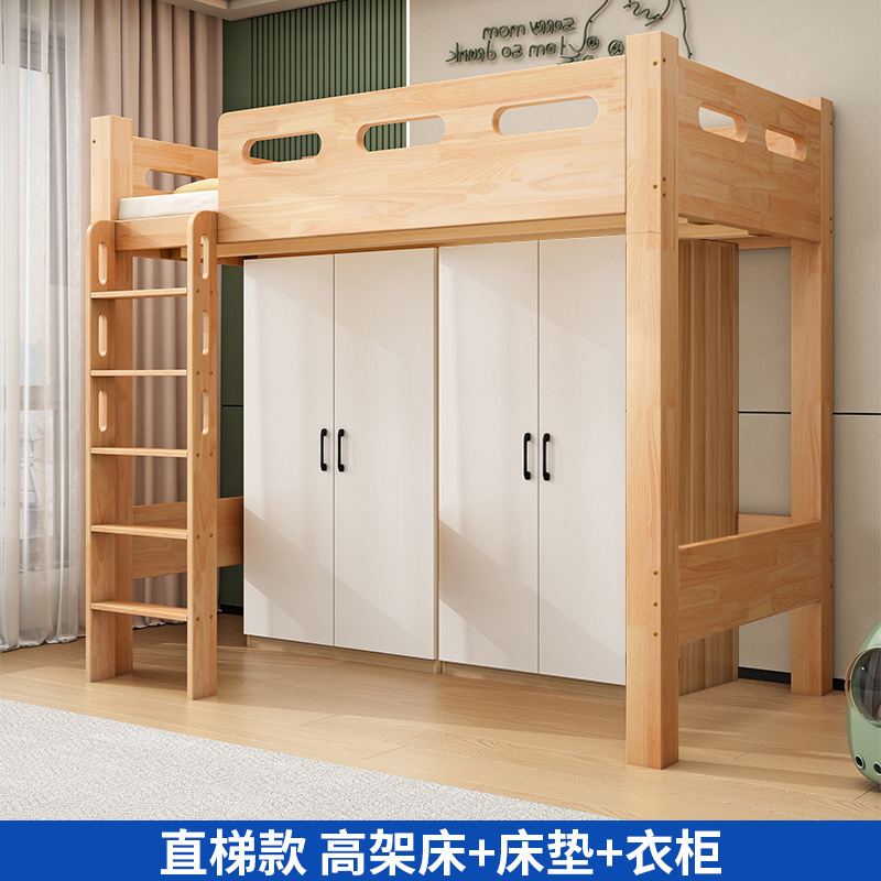침대 위에 테이블 아래 원목 고무나무 작은 아파트 어린이용 높낮이 침대 옷장 포함 다기능 이층 침대스토어 가기
