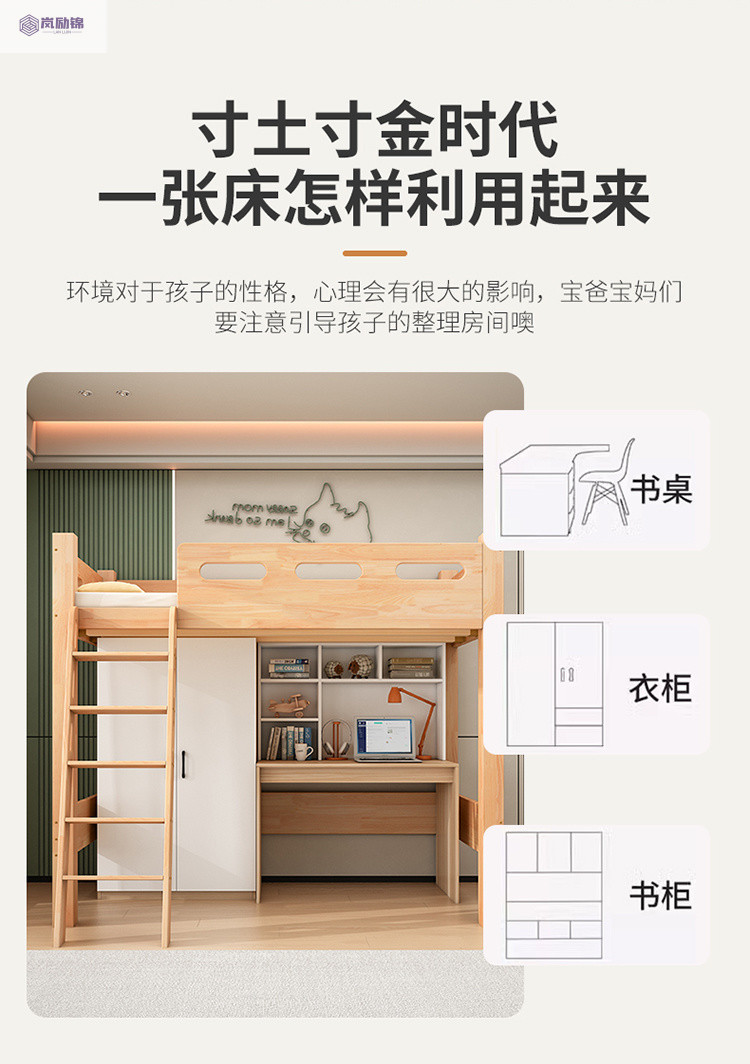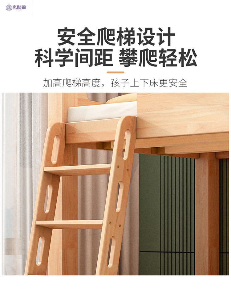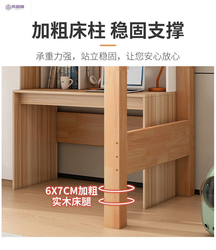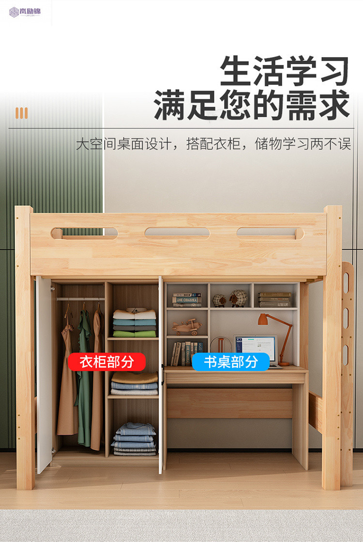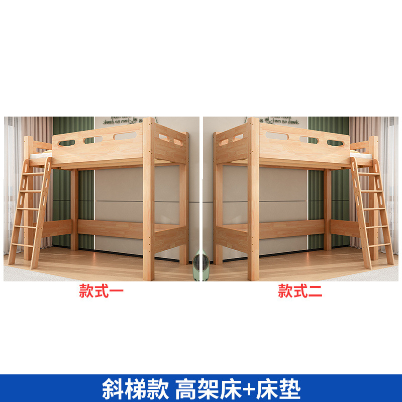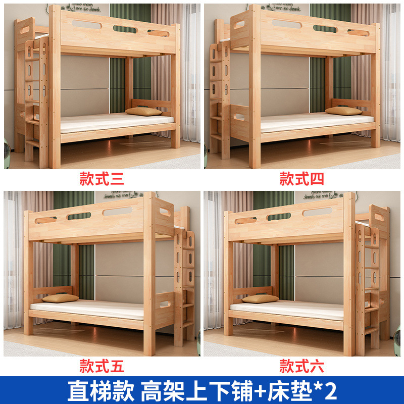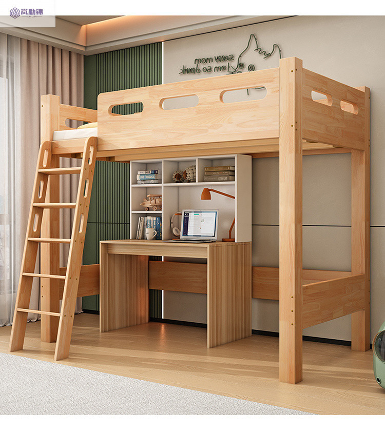 침대 위에 테이블 아래 원목 고무나무 작은 아파트 어린이용 높낮이 침대 옷장 포함 다기능 이층 침대스토어 가기