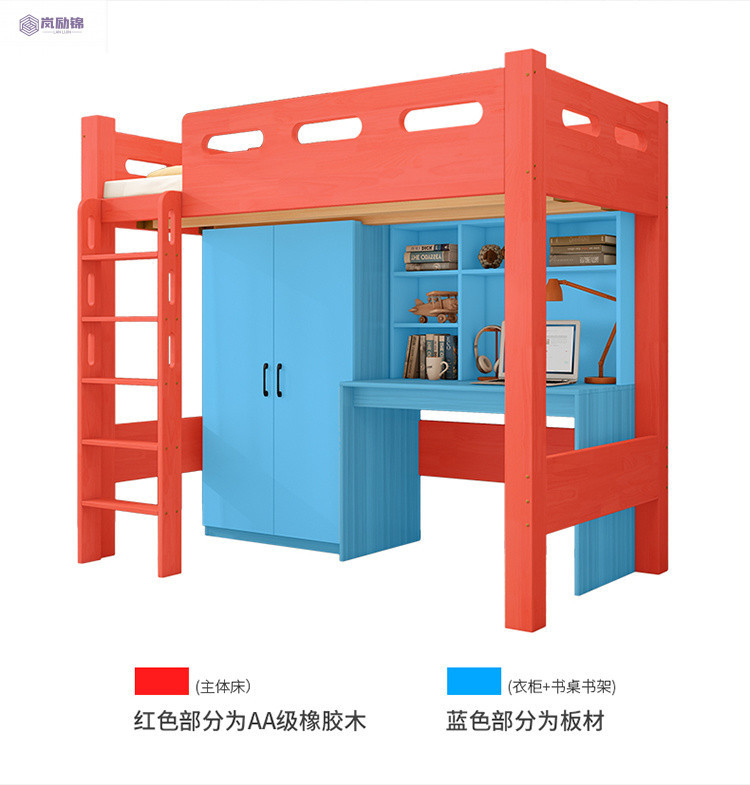 침대 위에 테이블 아래 원목 고무나무 작은 아파트 어린이용 높낮이 침대 옷장 포함 다기능 이층 침대