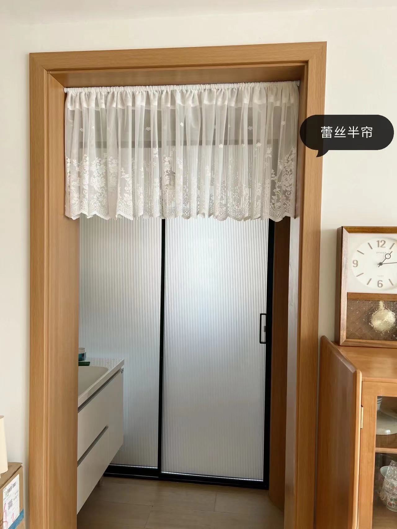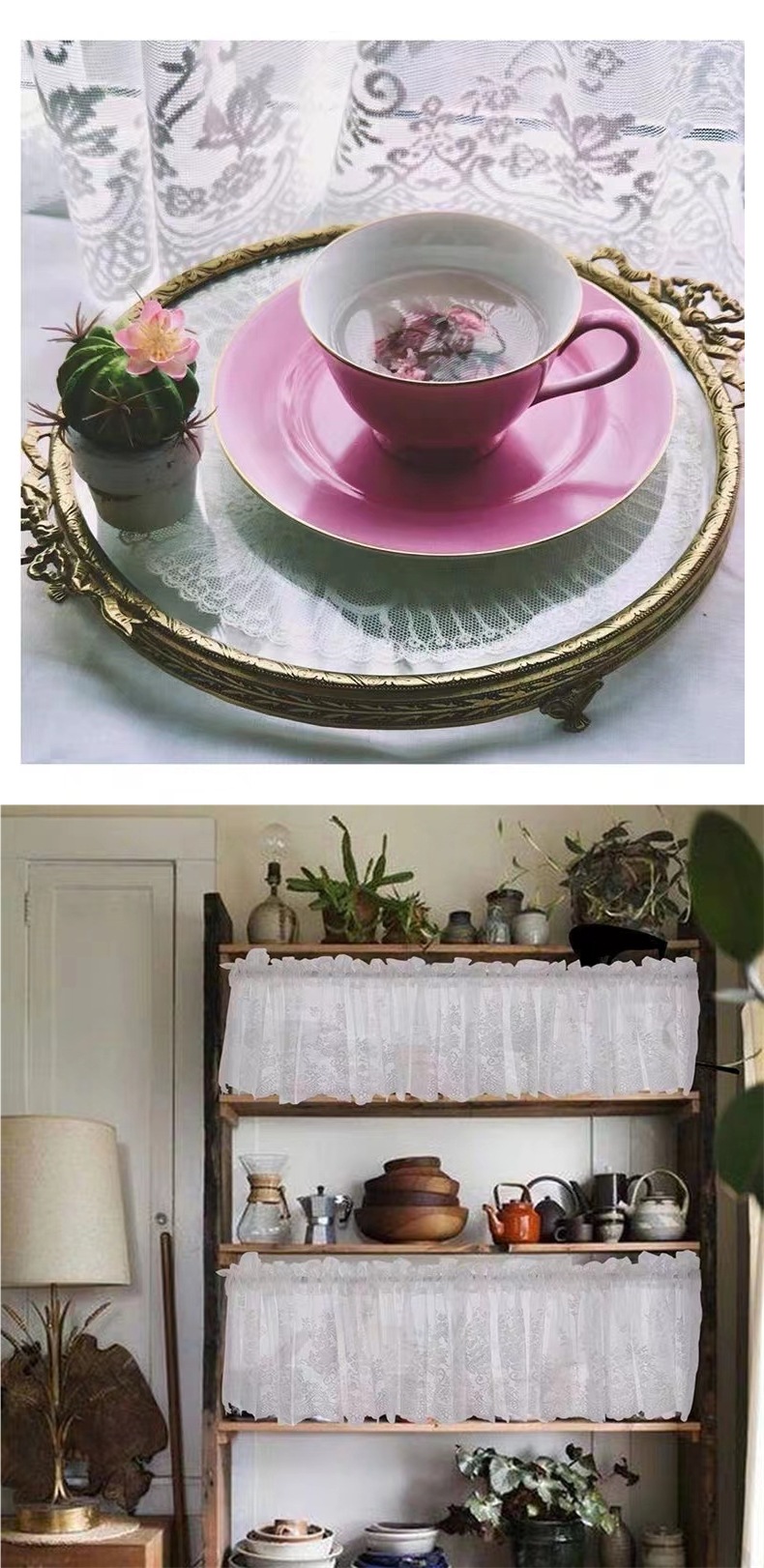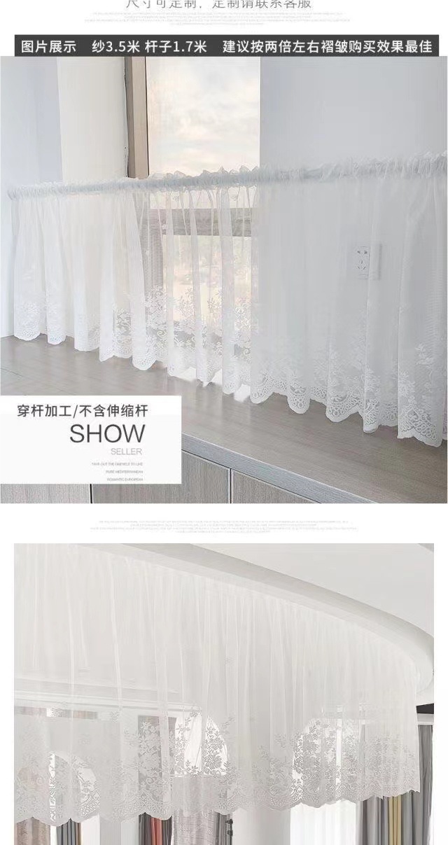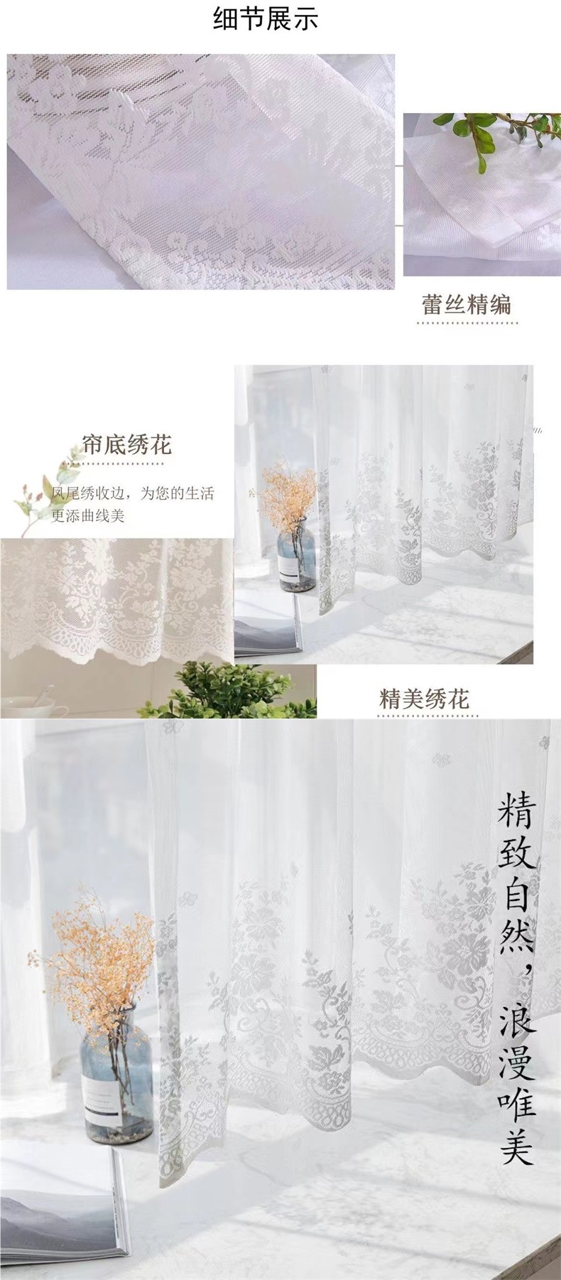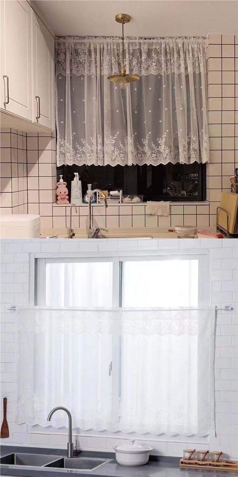 흰색의 아름다운 소박한 레이스 반커튼, 짧은 커튼, 주방 도어 커튼, 플로어 창 책장 커튼, 펀치 없는 매직 테이프 거즈 커튼스토어 가기