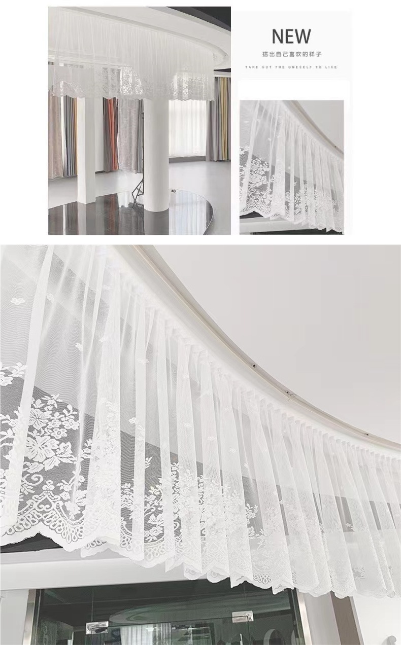 흰색의 아름다운 소박한 레이스 반커튼, 짧은 커튼, 주방 도어 커튼, 플로어 창 책장 커튼, 펀치 없는 매직 테이프 거즈 커튼