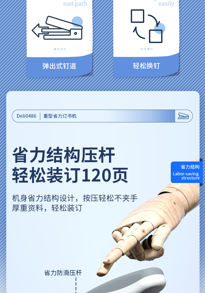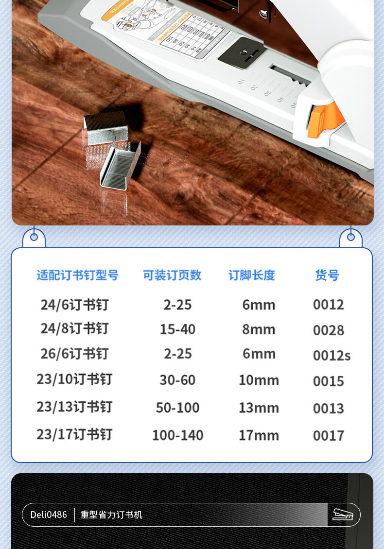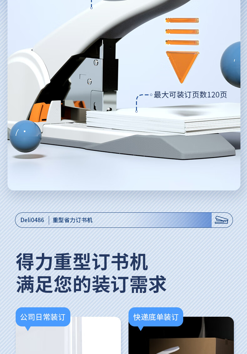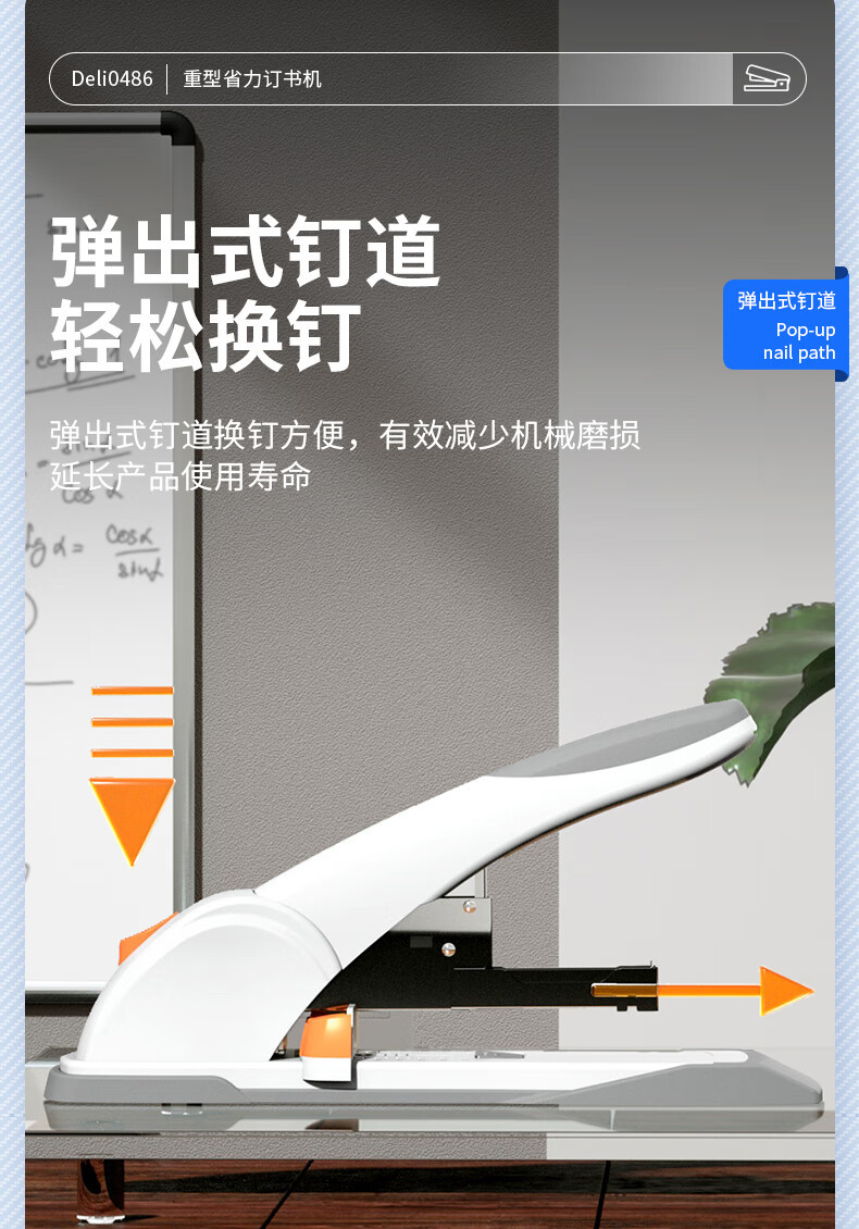 델리 0486 노동 절약형 스테이플러 헤비 듀티 두꺼운 레이어 스테이플러 사무실용 강력한 문서 바인더스토어 가기