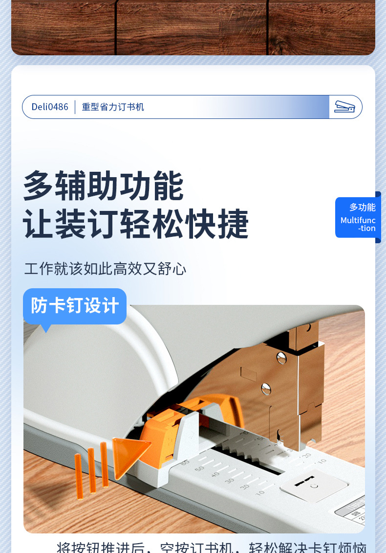 델리 0486 노동 절약형 스테이플러 헤비 듀티 두꺼운 레이어 스테이플러 사무실용 강력한 문서 바인더