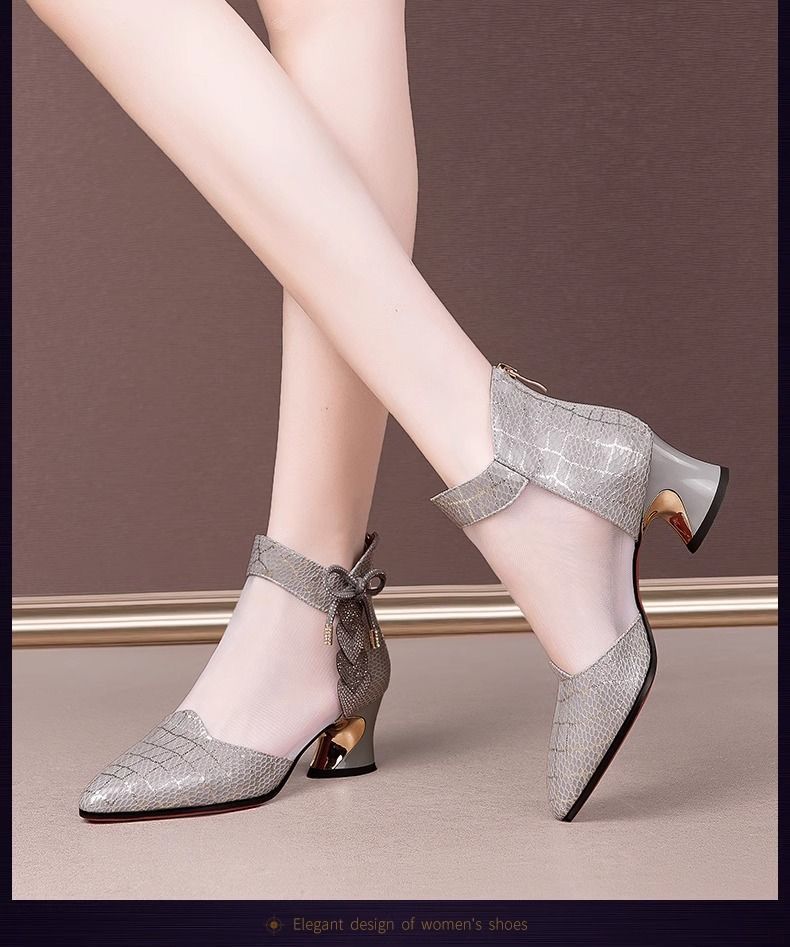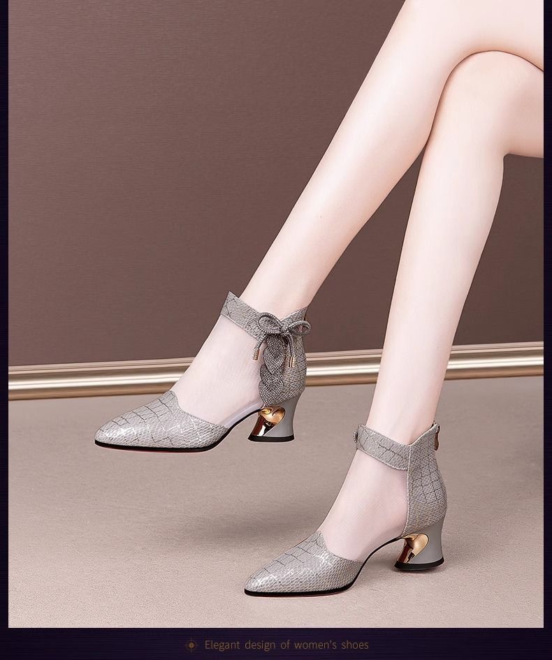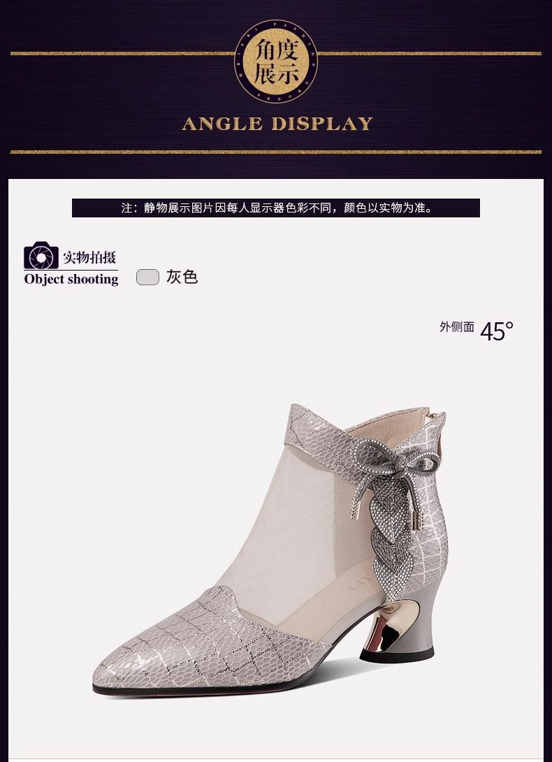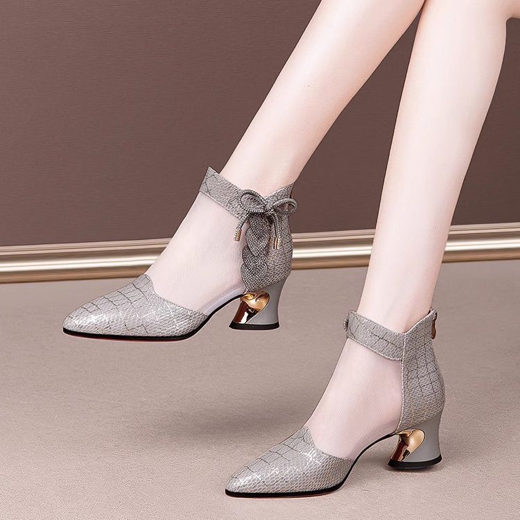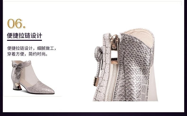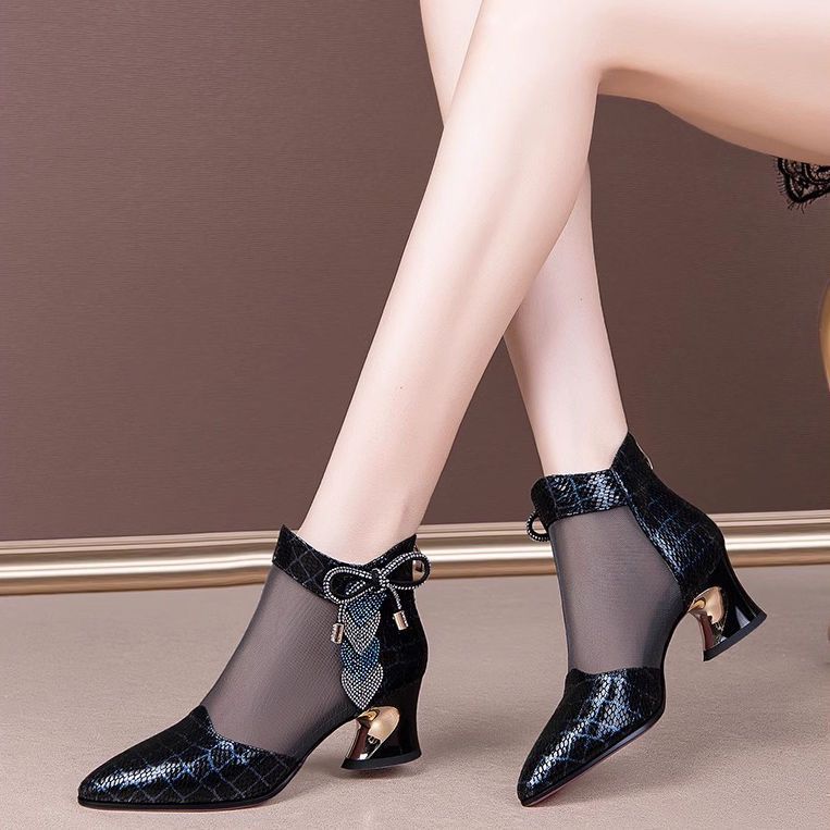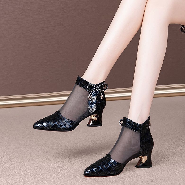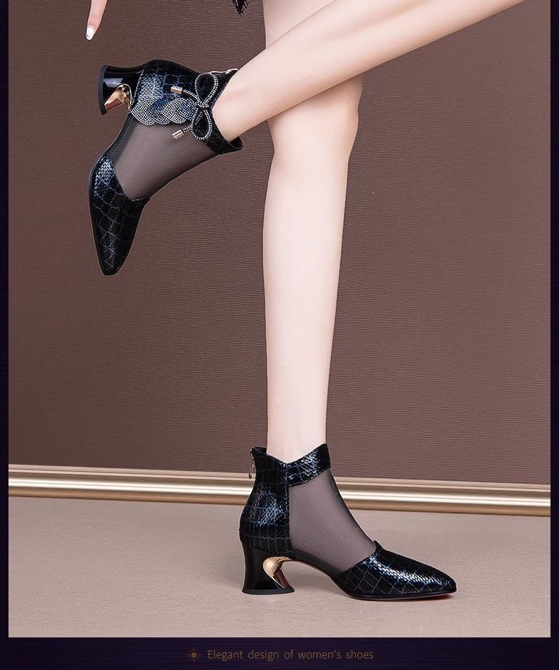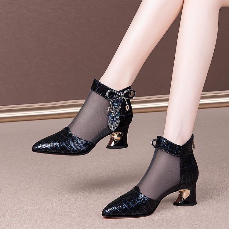 여성용 인기 라인스톤 메쉬 부츠, 여성용 미드힐 중공 메쉬 샌들, 두꺼운 굽, 2025 봄 여름 통기성 대형 여성화 샌들스토어 가기