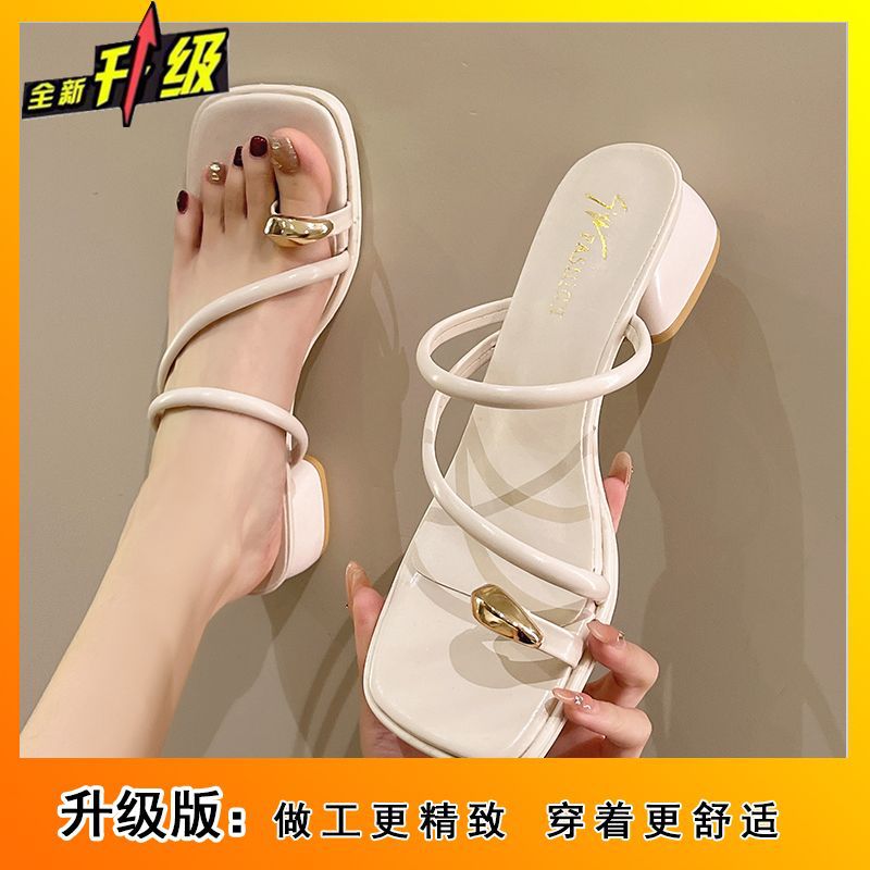 스커트와 매치한 요정 스타일의 패셔너블한 프렌치 샌들 2025년 여성을 위한 새로운 두꺼운 굽 샌들 여름 아우터 여성용 슬리퍼스토어 가기