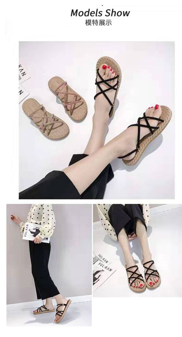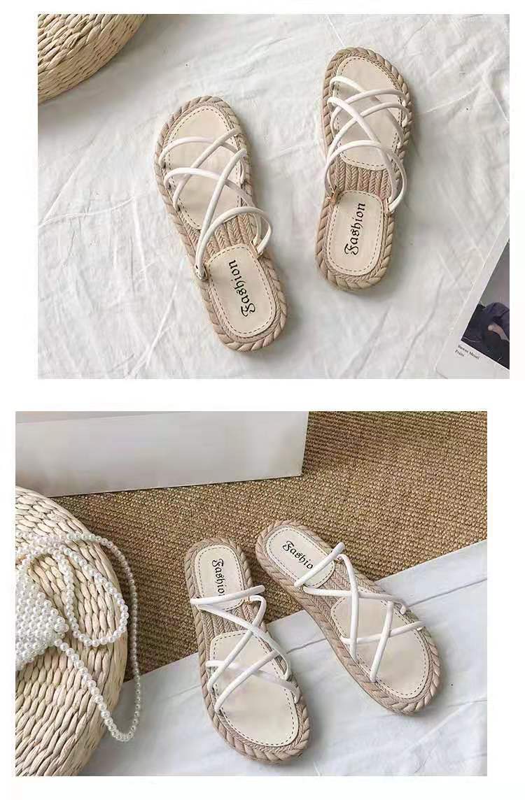 인터넷 연예인 비치 샌들 해변 2025 여름 새 샌들 여성 요정 스타일 플랫 바닥 겉옷 여성용 다용도 슬리퍼스토어 가기