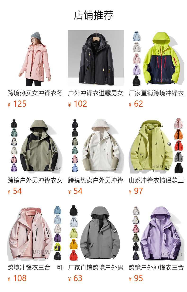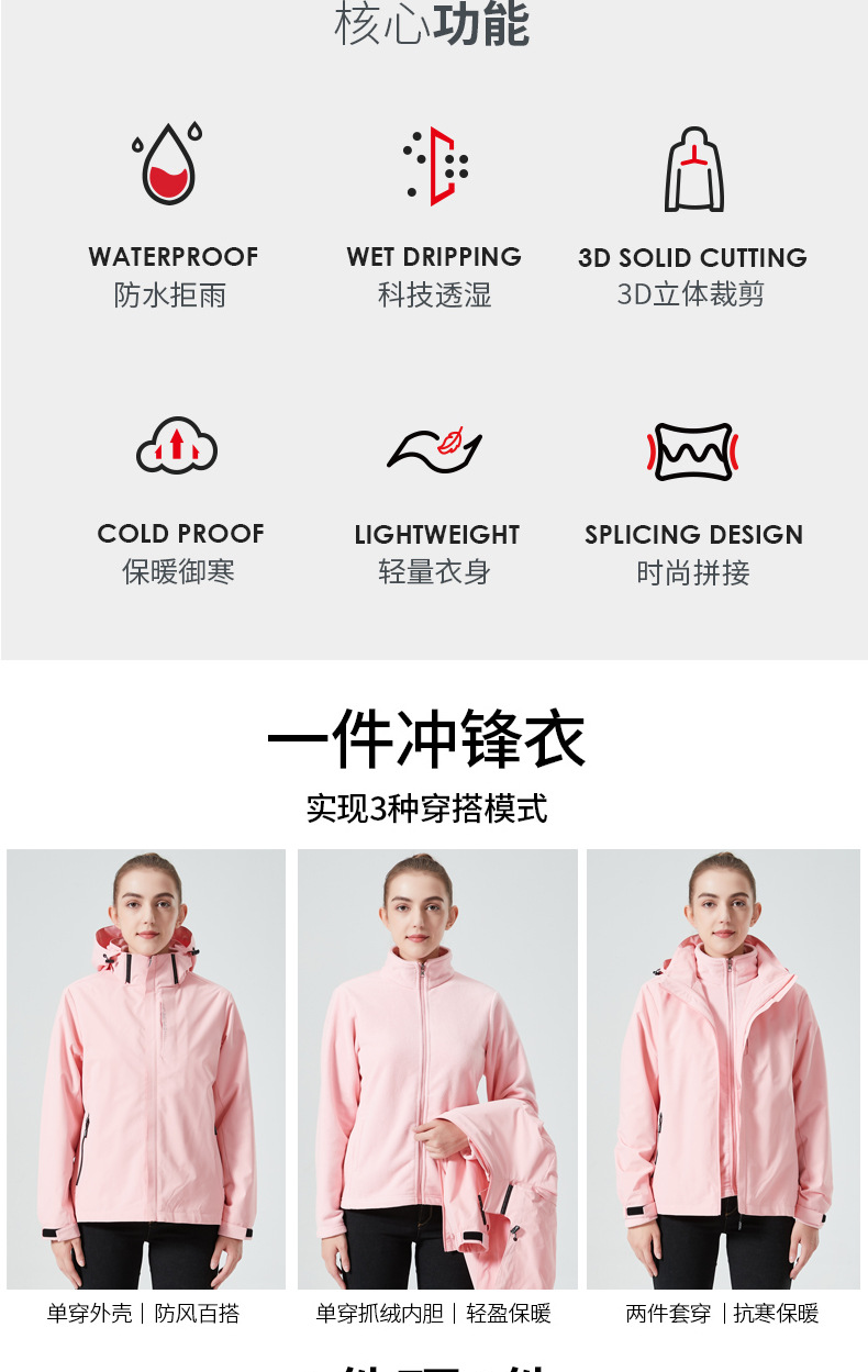 공장 직접 판매 분리형 여성 남성 자켓 방수 방풍 두꺼운 코트 여성 3-in-1 0.05kg 피스 세트 등산복스토어 가기