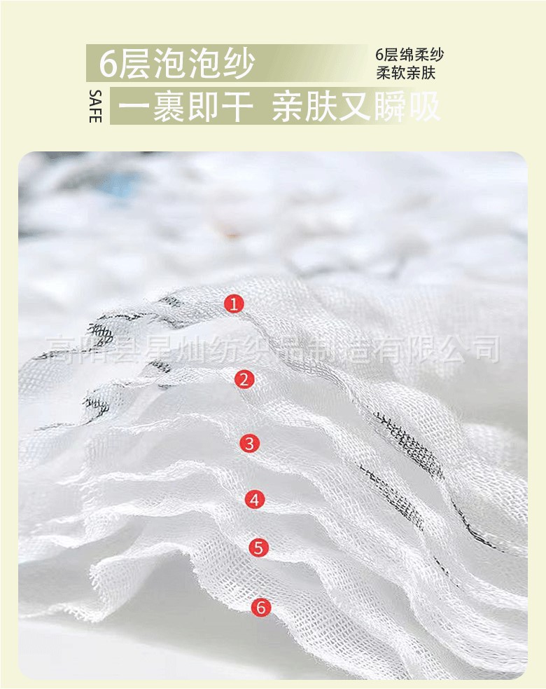 6겹 순면 시어서커 클래스 A 어린이 여름 이불 유치원 여름 얇은 이불 낮잠 거즈 유아 담요