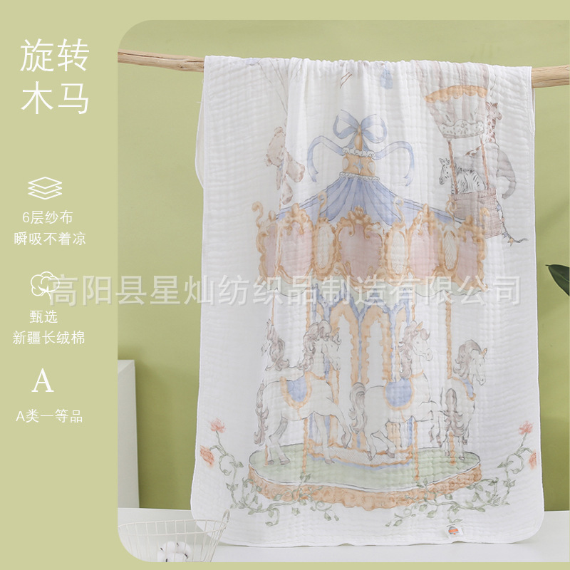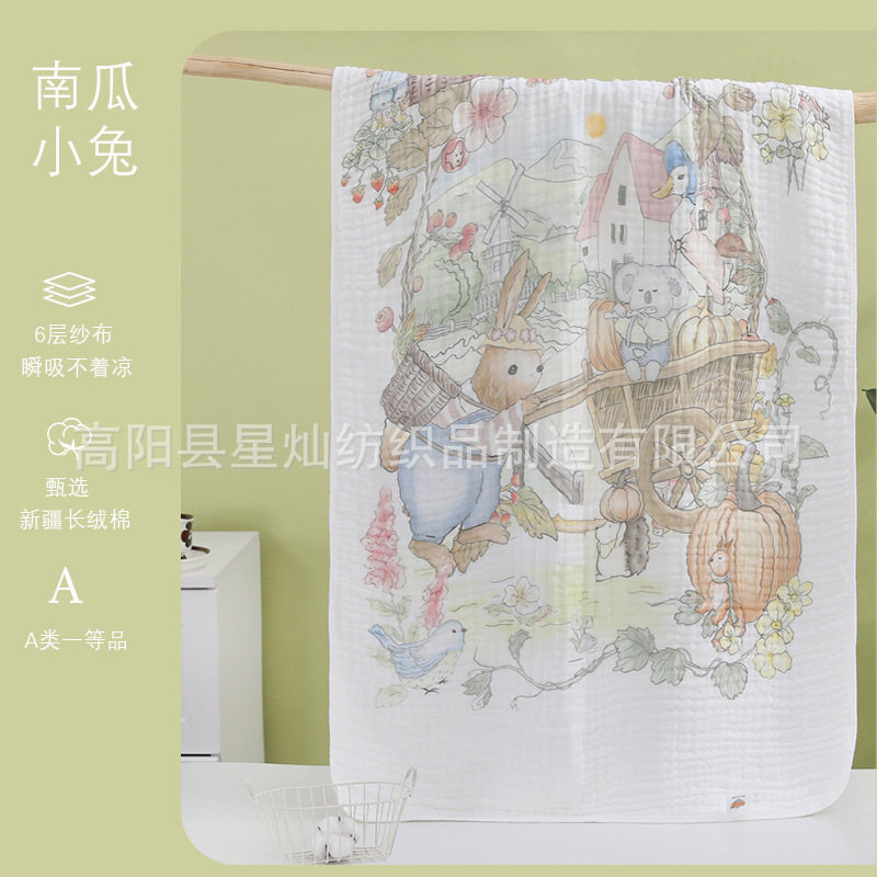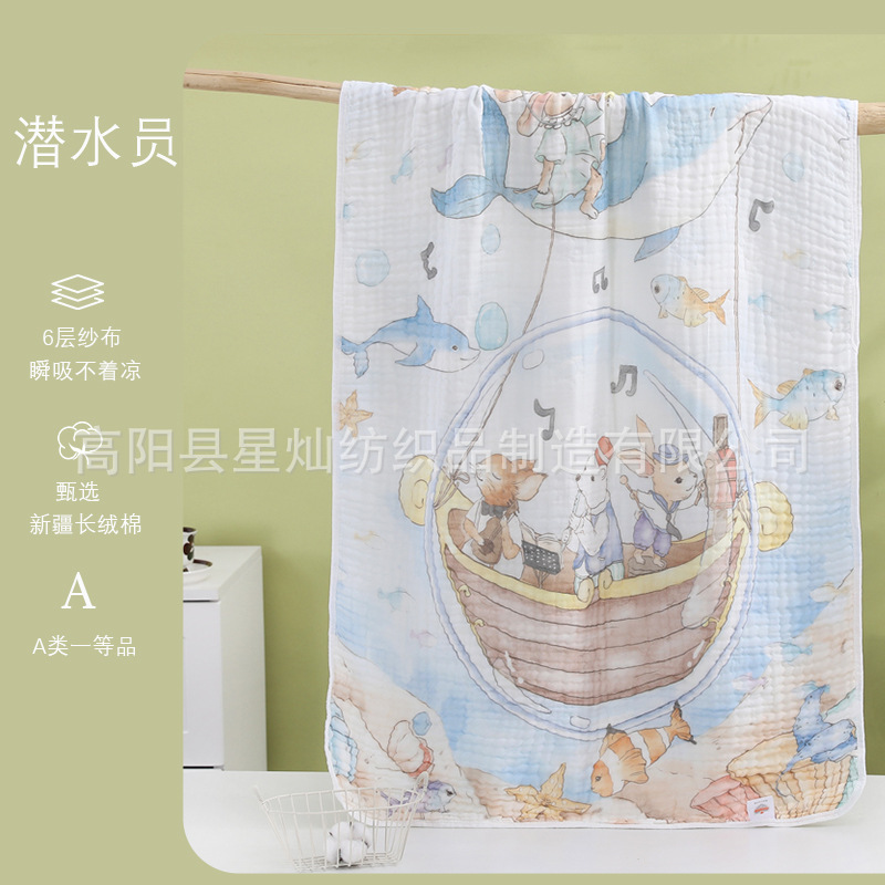 6겹 순면 시어서커 클래스 A 어린이 여름 이불 유치원 여름 얇은 이불 낮잠 거즈 유아 담요스토어 가기