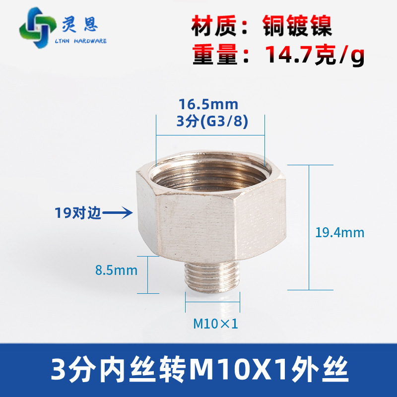 전체 구리 커넥터 M12MMM 가변 직경 코어 16M814M5 와이어 410 내부 및 외부 압력 게이지 M6 변환 G1