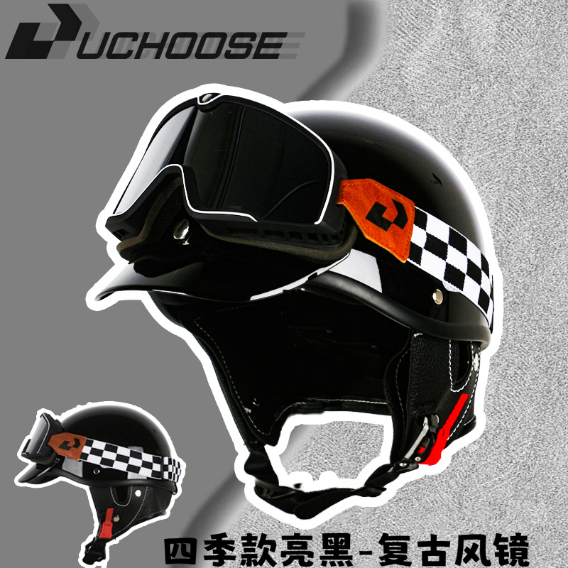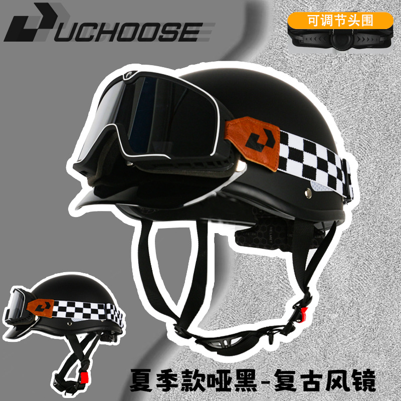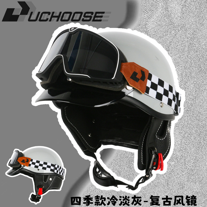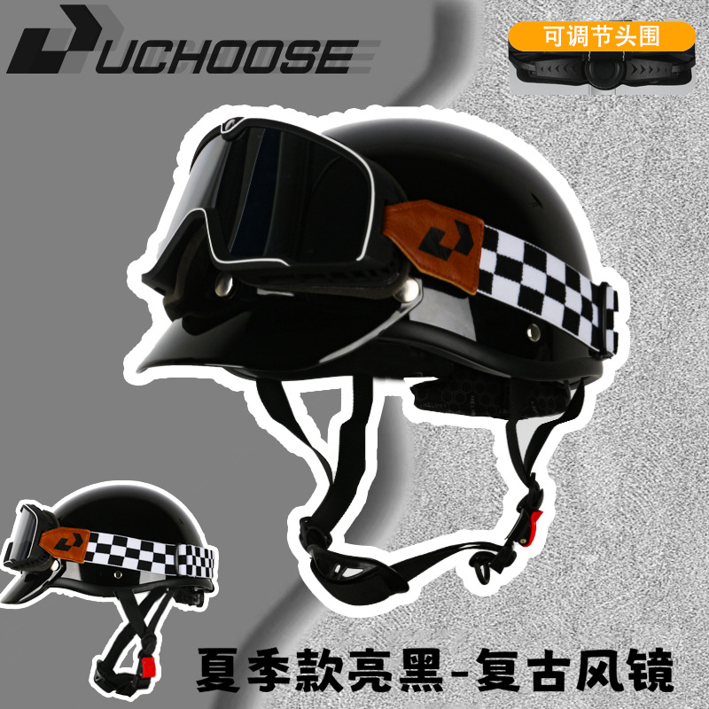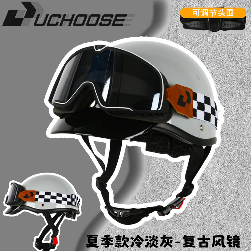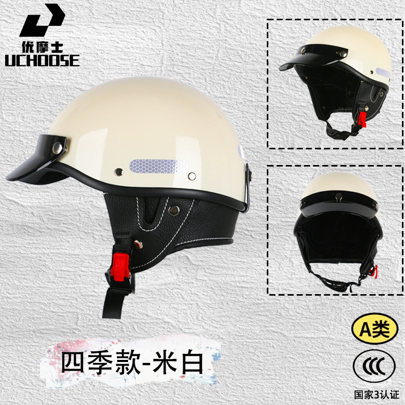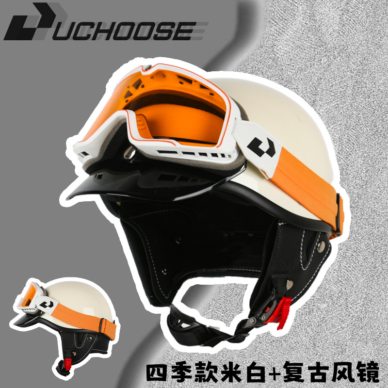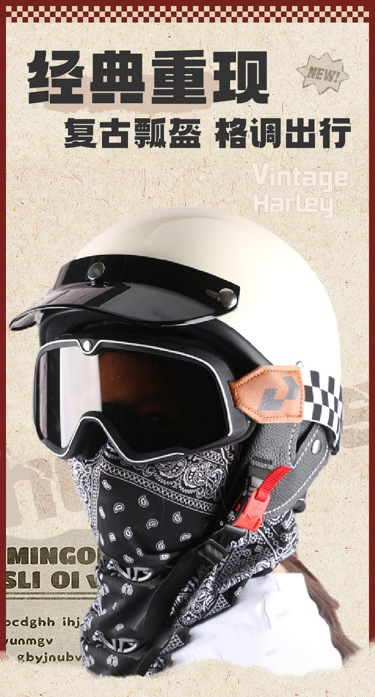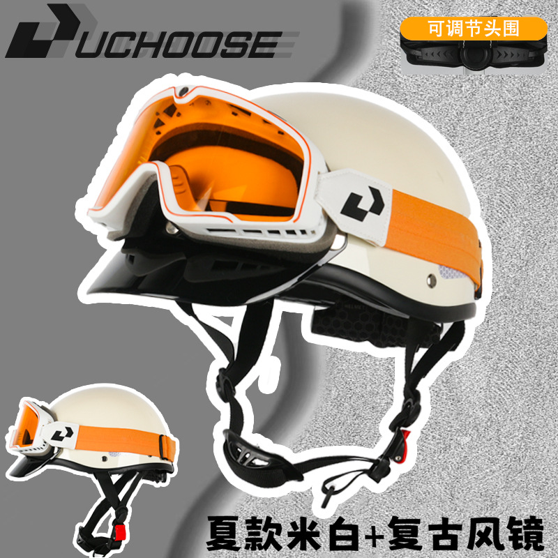 오토바이 배터리 자전거 헬멧 크루즈 레트로 일본식 반헬멧 남녀공용 고글 포함 전기 자전거용스토어 가기