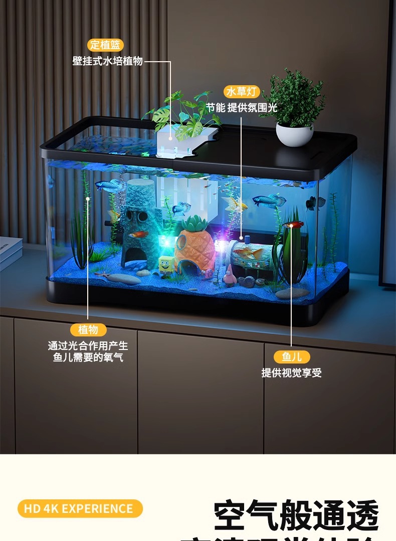 수조 거실 2025 새로운 투명 필터 산소 발생기 일체형 데스크탑 조경 장식품 램프 및 생태 수조스토어 가기