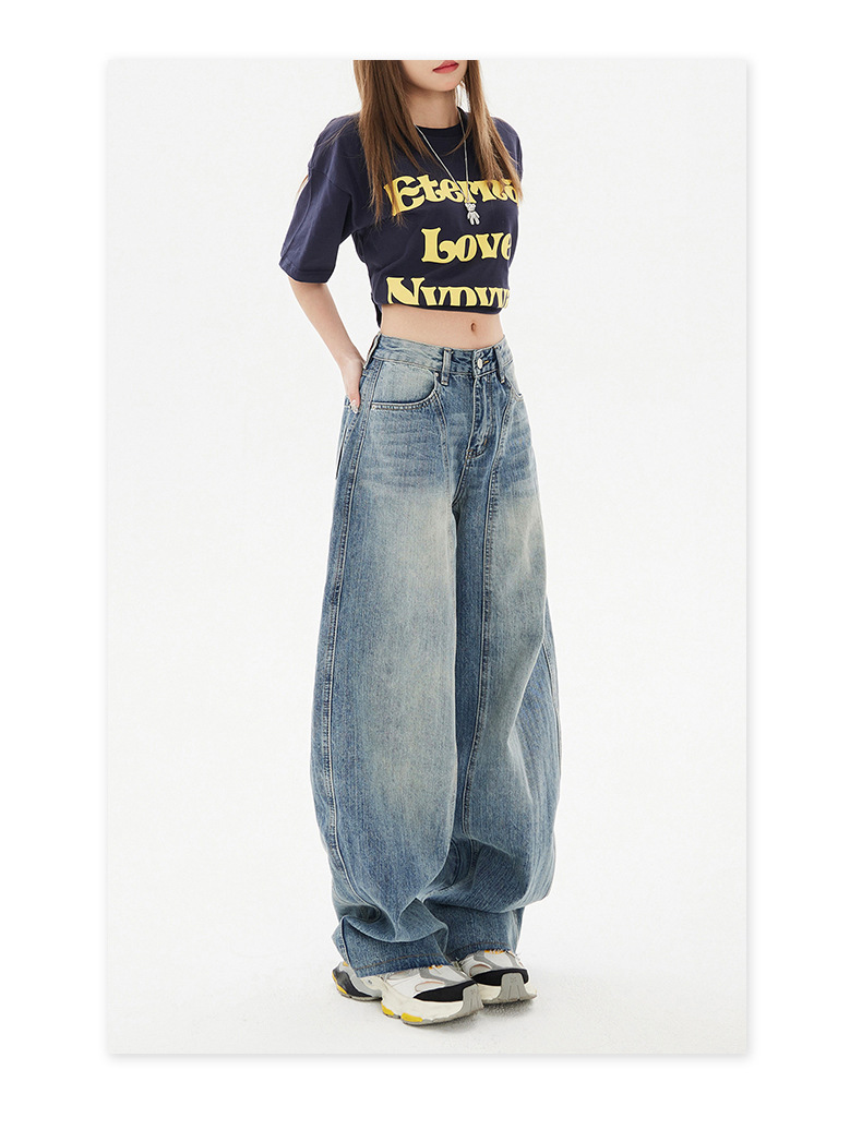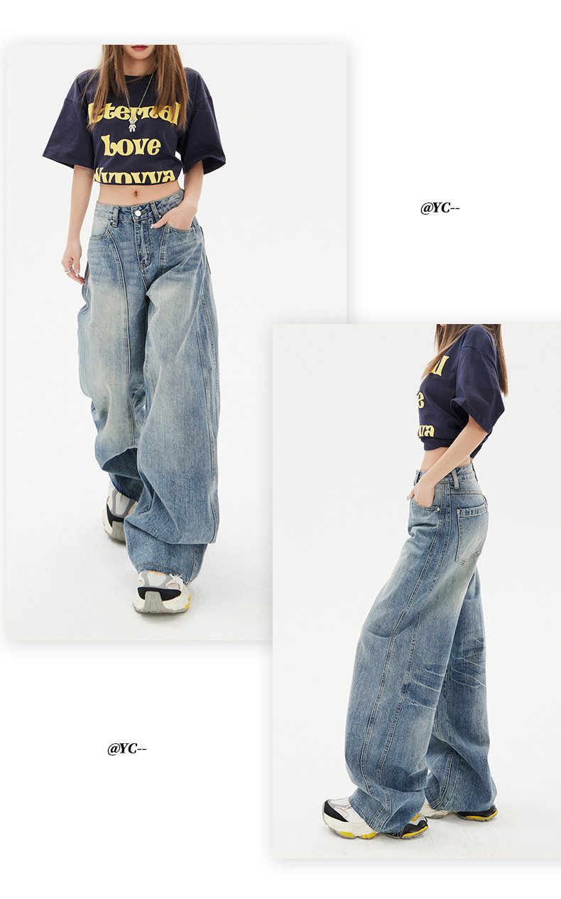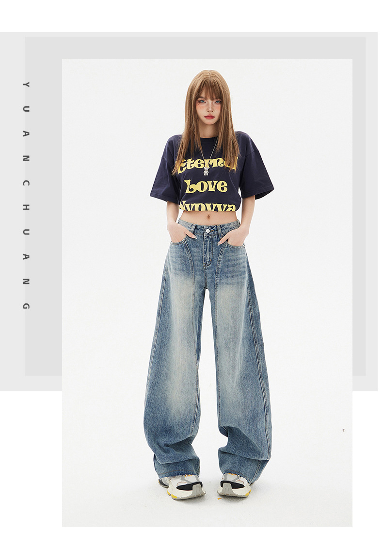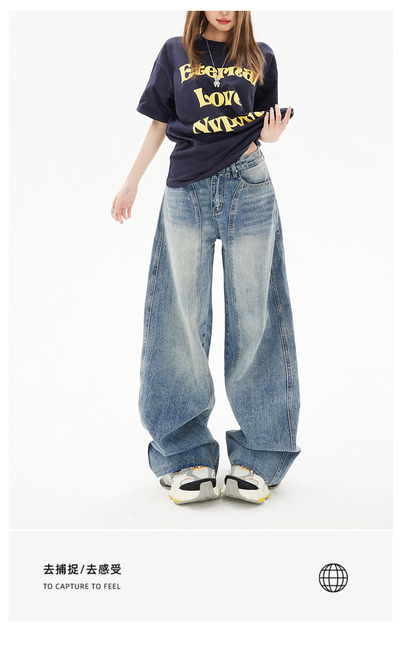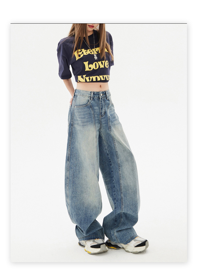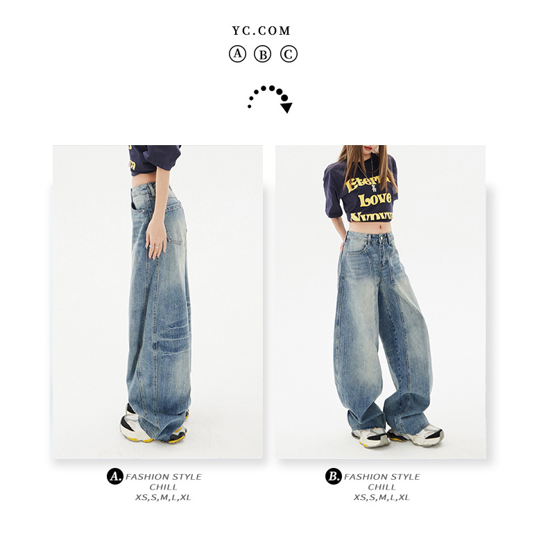 미국 레트로 스타일 여성용 와이드 레그 청바지, 가을용 하이웨이스트 스트레이트 핏, 배형 체형을 위한 루즈핏, 사슬바지, 커브드 바지스토어 가기
