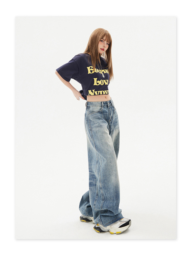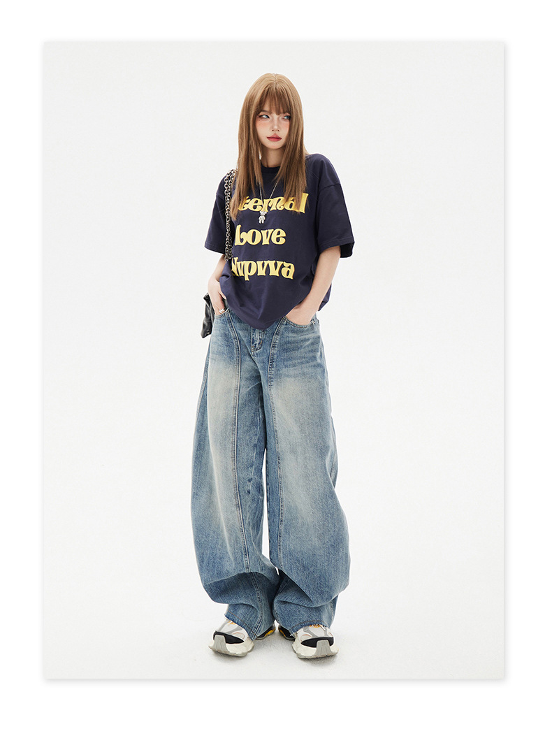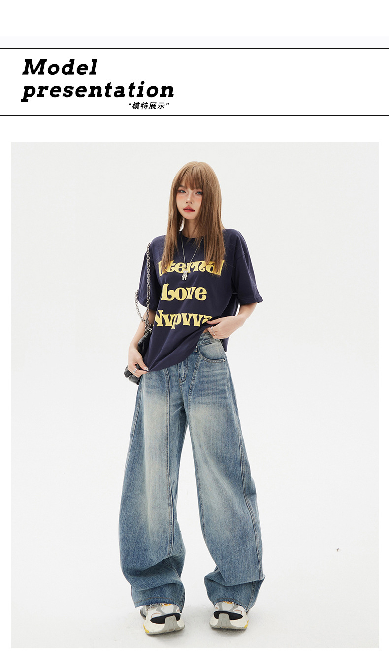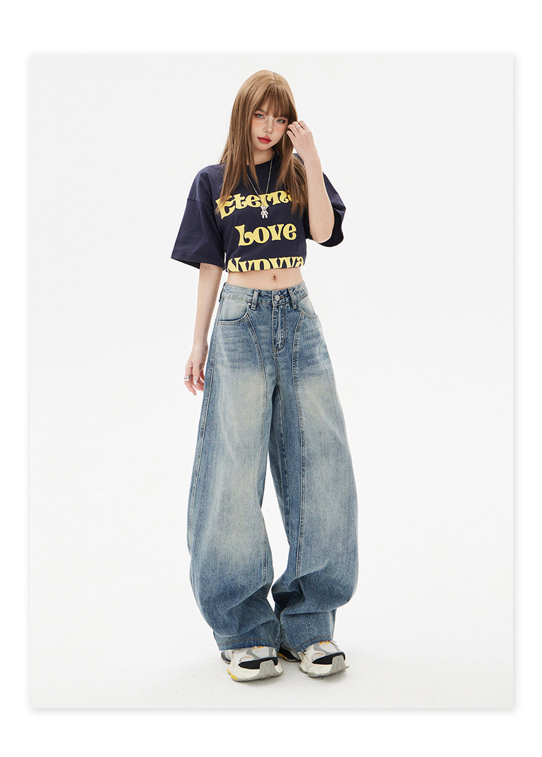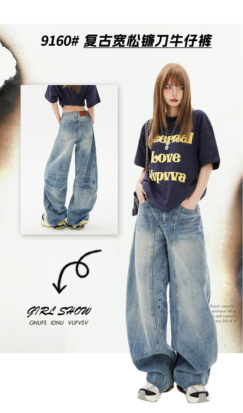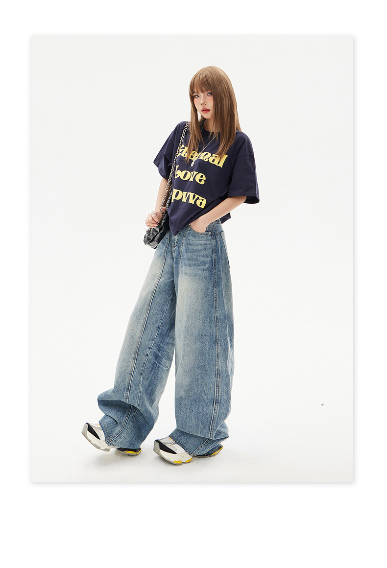 미국 레트로 스타일 여성용 와이드 레그 청바지, 가을용 하이웨이스트 스트레이트 핏, 배형 체형을 위한 루즈핏, 사슬바지, 커브드 바지스토어 가기
