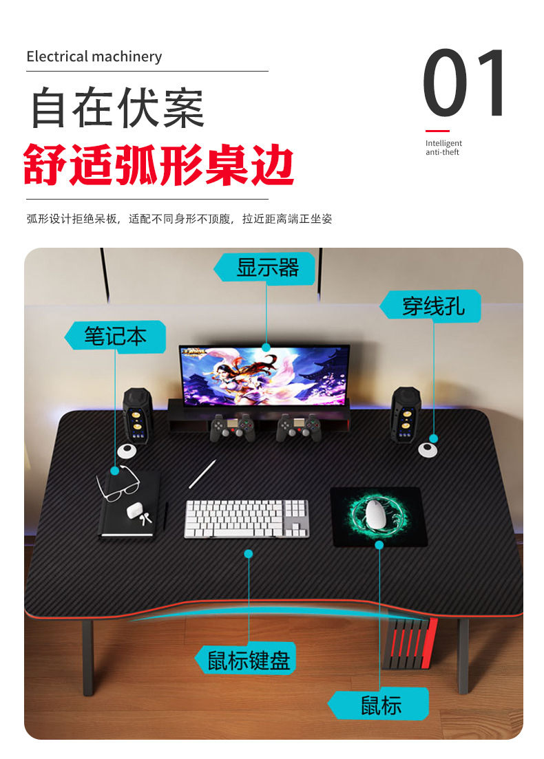 인터넷 카페 e-스포츠 컴퓨터 책상 앵커 라이브 방송 테이블 제조업체 중학생 학습 책상 k자형 확장 e-스포츠 테이블