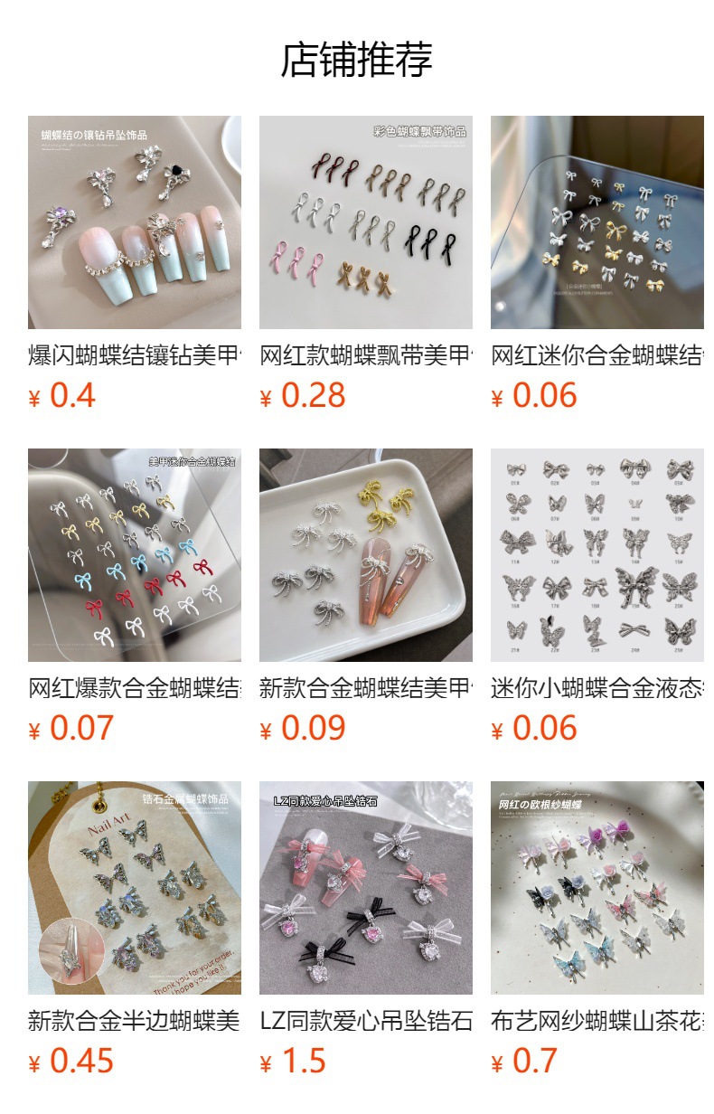 미니 나비 매듭 네일 아트 합금 쥬얼리 3차원 혼합 플로팅 넥타이 네일 다이아몬드 간단하고 다재다능한 장식 도매스토어 가기
